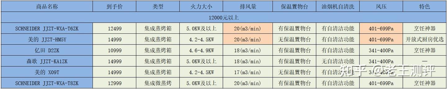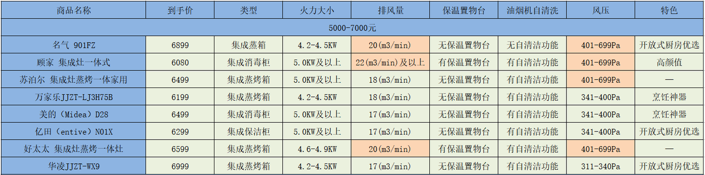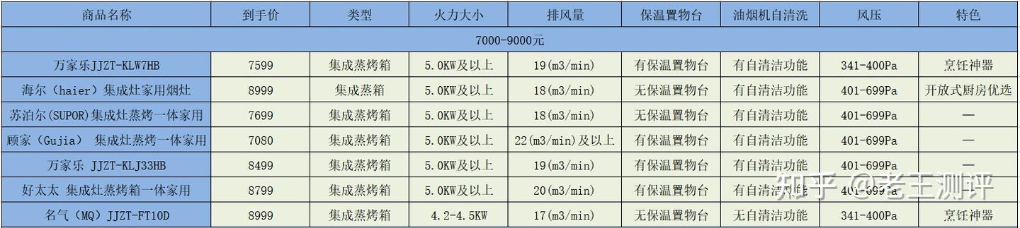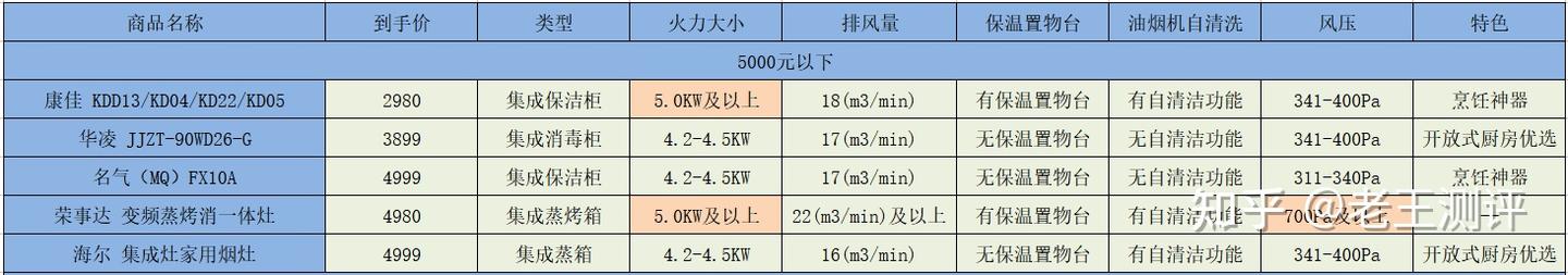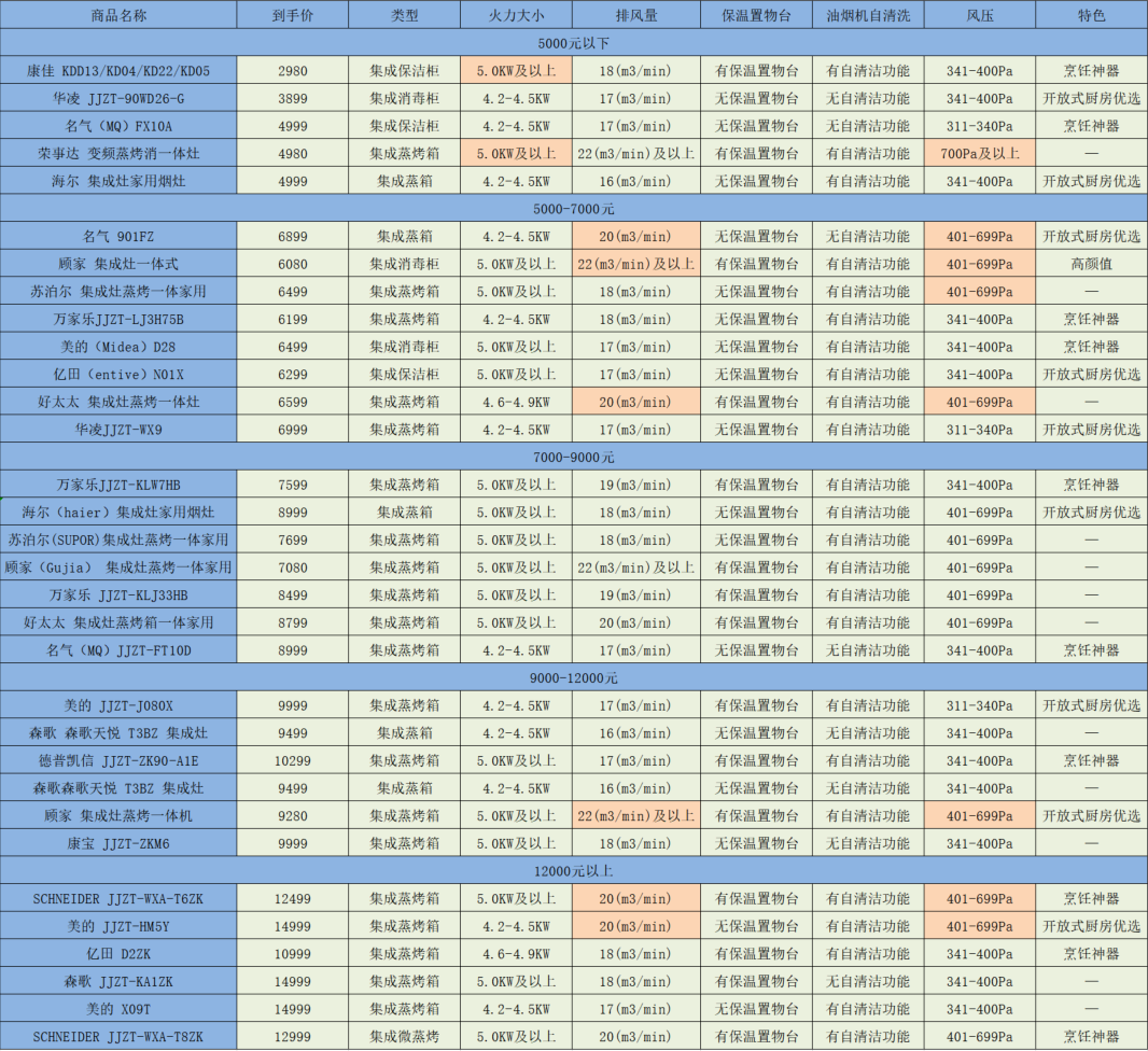 二、不同价位集成灶参数对比和推荐