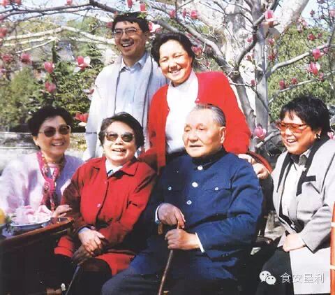 九十年代的邓小平和妻子儿女们。前排左起:卓琳、邓小平、邓朴方;后排左起:邓质方、邓林、邓榕、邓楠。