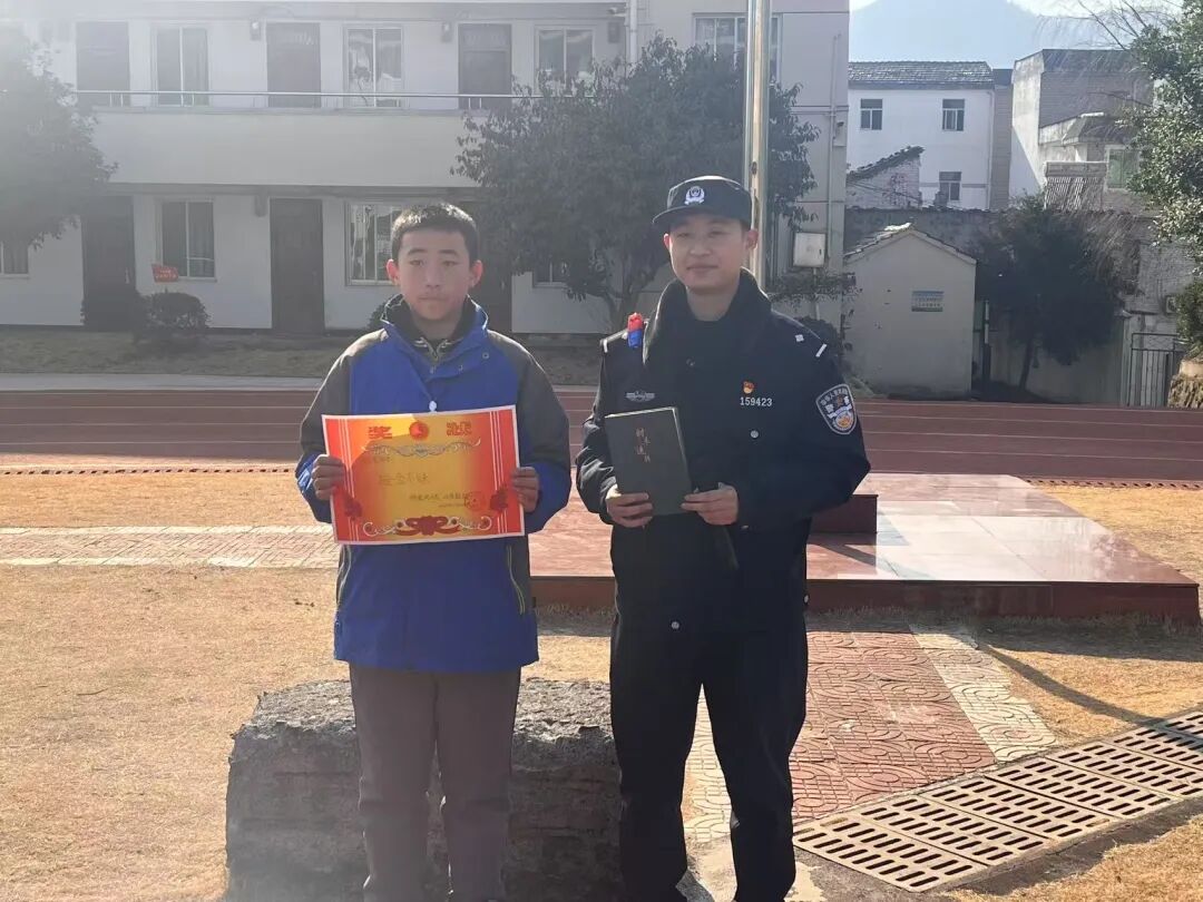 送上拾金不昧奖状与奖品