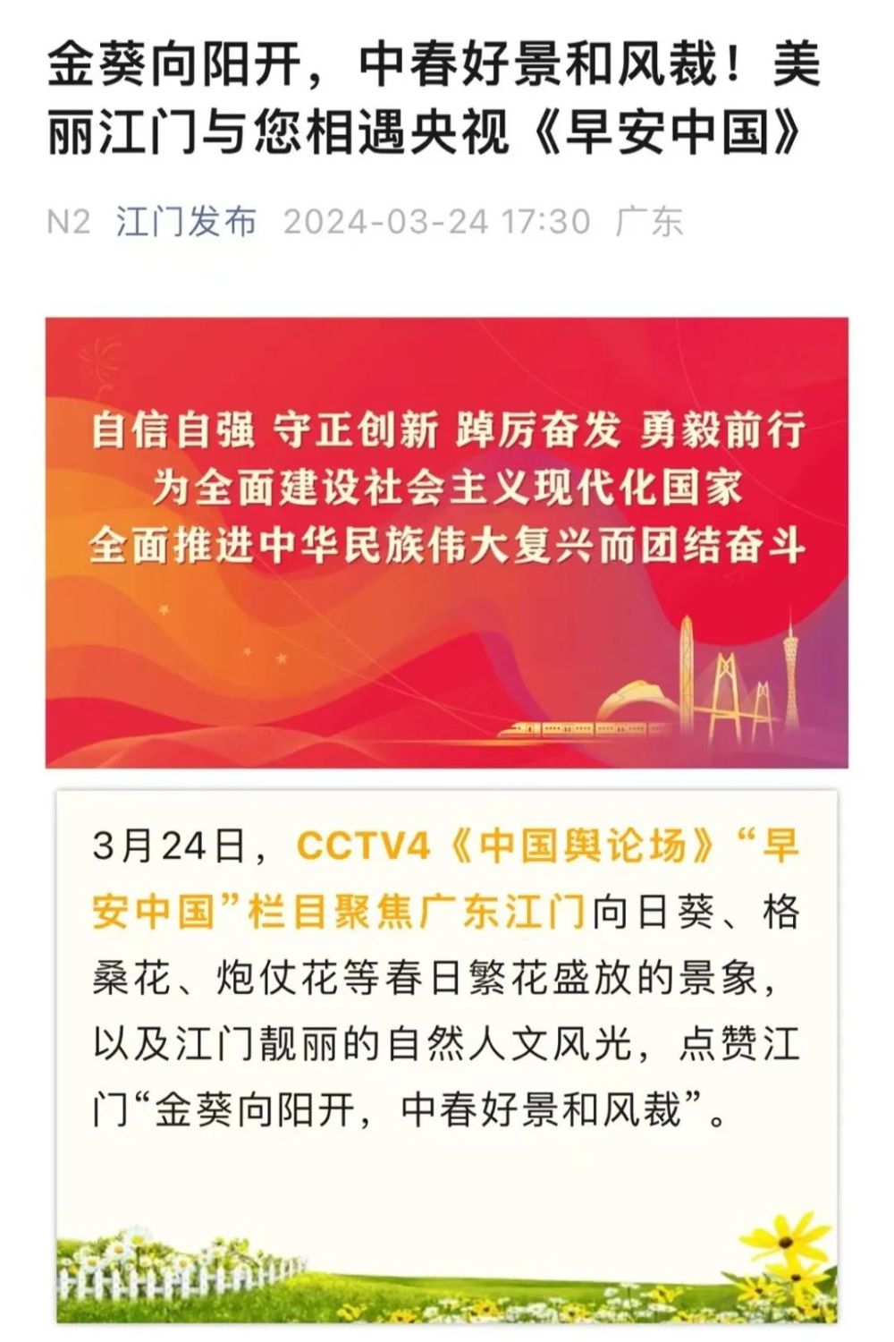 “《早安中国》入人心,美丽河山春色浓。”