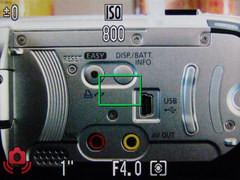 在镜头斜下方还有一个凸起的按钮,并不像单反相机这个位置通常设计景深预测按钮,G10的这个按钮为镜头转接环释放键,卸下转接环,可以在卡口位置再安装增距镜或广角附加镜,以增大镜头的拍摄能力。