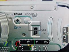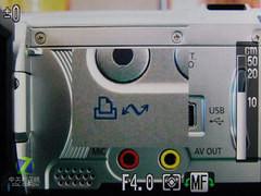 在机身右侧的保护盖下是G10所有机身接口所在地,自上而下是A/V OUT、遥控器接口和USB接口。