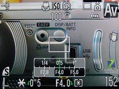 在光圈优先模式下,更改感光度或曝光补偿时,相机会先对曝光值进行锁定,光圈指示条和速度指示条会共同移动,带给使用者以直观且专业的感受。