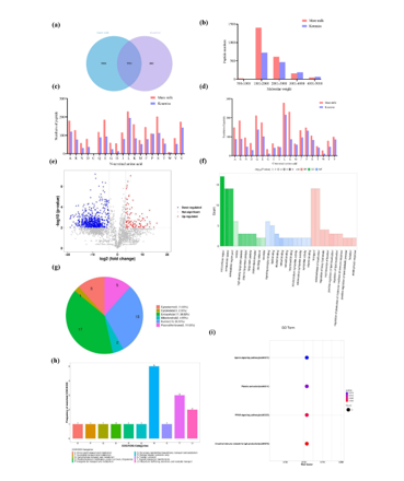 马奶酒(koumiss)由马乳自然发酵产生,在蒙古草原有着悠久的消费历史。传统上,马奶酒是用上一年或前一批褐蘑菇中保留的天然微生物进行发酵,将生马乳装在木桶、瓷罐或动物皮中,在室温下发酵1~3 d制成的。最初的生马乳可能存在细菌污染,而马奶酒的生产过程均为开放式自然发酵,没有任何高温灭菌,因此认为马奶酒在自然发酵过程中会自发形成许多抑菌物质,其中抗菌肽(antimicrobial peptides,AMPs)具有很大的研究价值。在以往的研究中,从马奶酒中分离鉴定出一些具有抑菌功能的益生菌,如干酪乳杆菌(Lactobacillus casei)。然而,对马奶酒中AMPs的研究是有限的。AMPs的长度通常为12~50 张凤梅个氨基酸,由于其低分子质量、易于合成、对代谢物无毒以及易于进入细胞而受到广泛关注。AMPs通常是两亲性的,并携带2~9 个净正电荷。AMPs的正电荷引导它们到达带负电荷的细菌细胞膜,使得它们能够破坏细胞膜并导致细胞内容物泄漏,最终诱导细胞死亡。同时,AMPs还可以干扰蛋白质,对细菌、真菌和一些寄生虫显示出多种抗菌活性。值得注意的是,一些AMPs以无活性形式存在于蛋白质序列中,通过微生物胃肠道消化、发酵、酶解或加工贮藏的蛋白质水解可以产生具有不同生物活性的多肽,其中,微生物发酵是最经济、最有效的方法。尽管AMPs具有广阔的应用前景,但传统方法鉴定AMPs的研究仍然有限。肽组学技术是蛋白质组学的一个新兴领域,是一种通过现代分离、分析和计算技术对各种生物样品中的肽进行综合分析的方法。由于其可以高效、快速、完整地研究各种生物体内内源性肽的组成和含量,肽组学技术已成为食品和药物研究领域的新研究方法。由于乳制品营养丰富,因此容易受到微生物污染。金黄色葡萄球菌(Staphylococcus aureus)是乳制品中的一种耐高温食源性病原体,因此高温灭菌并不能完全消灭它们。利用食品中固有的AMPs控制食品中的金黄色葡萄球菌更为安全有效。马奶酒有一定的抑菌潜力,然而,马奶酒中AMPs的综合纯化与表征相关研究比较少。内蒙古农业大学食品科学与工程学院Zhang Mengmeng、Shuang Quan、Xia Yanan、Zhang Fengmei等利用肽组学技术研究马乳和马奶酒多肽的组成和差异,并通过AMPs数据库筛选和预测具有抑菌潜力的多肽。对筛选的AMPs进行化学合成,并通过电子显微镜等方法证实其抗菌活性,揭示其抗菌机制。研究为从马奶酒衍生蛋白的产物中高效筛选AMPs提供了理论基础。马乳和马奶酒的10 kDa片段中有46.75%(1 113)的肽序列相同,53.25%(1 268)的肽序列不同,这些肽的长度大部分为10~50 个氨基酸。如图1e所示,发现显著调控的主要肽段来源于β-酪蛋白(Q9GKK3)和αs1-酪蛋白(A0A3Q2HHX1)。酪蛋白是马奶酒中含量最丰富的蛋白质。此外,微生物生物合成的酶主要定位于细胞外基质(39.53%)和线粒体(30.23%)。a