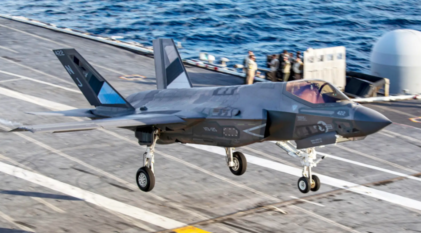 最近,美国国防部公布了海军舰载战斗机F-35C正在林肯号航母上进行“蜻蜓点水”飞行的图片。照片中的F-35C有两点颇为引人关注。首先是F-35C垂尾外侧和内侧采用了多色调镜面处理。每个尾翼上的装置都由深色和亮色的片状和瓦片状涂层组成。机翼上部也有与我们在其他隐形飞机上看到的大致相同的三种涂层条。我们姑且将这种涂装称为“镜面涂装”。