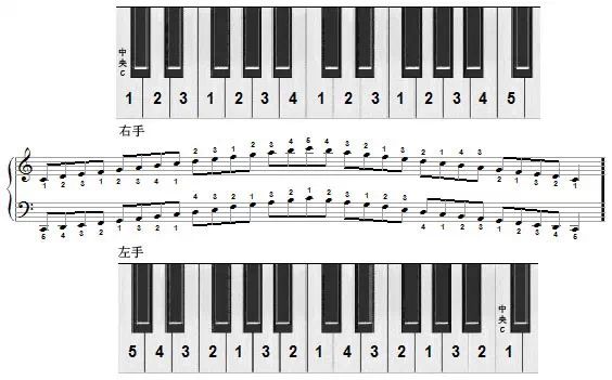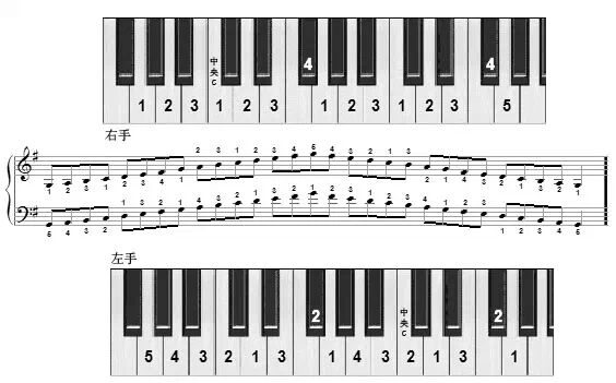 看了就要关注我哦!!熟练掌握各调音阶是初学钢琴者必须学会的技巧,只有通过严格、持久的练习,才会真正成为自己的技能,而熟悉和掌握这项基本技术,将直接影响到今后学习的进度。为助琴友们一臂之力,特将十二个大调的上行和下行的键位排列情况,以及各调在五线谱上的具体位置,图示如下。每个调,仅列出两个八度的琴键位置及指法。但琴友们可以依此类推,逐步扩展至四个八度,甚至更多。图示中的英文字母,分别表示具体的调名和音名,阿拉伯数字1至5,则分别代表左右手的五个手指,即:[1]表示大拇指、[2]表示食指、[3]表示中指、[4]表示无名指、[5]表示小指。希望各位严格按照图示上标明的指法练习,弹奏时注意保持手的平衡和音质的均匀。C大调音阶 : C D E F G A B CG大调音阶 : G A B C D E F# GD大调音阶 : D E F# G A B C# DA大调音阶 : A B C# D E F# G# AE大调音阶 : E F# G# A B C# D# EB大调音阶 : B C# D# E F# G# A# BF#大调音阶 : F# G# A# B C# D# E# F#F大调音阶 : F G A Bb C D E FBb大调音阶 : Bb C D Eb F G A Bb题Eb大调音阶 : Eb F G Ab Bb C D EbAb大调音阶 : Ab Bb C Db Eb F G AbDb大调音阶 : Db Eb F Gb Ab Bb C Db G大调钢琴键位图点击左下角 阅读原文 ↓↓↓↓ 转载请说明出处 内容投诉内容投诉九幽软件 » G大调钢琴键位图(g大调钢琴教学视频)