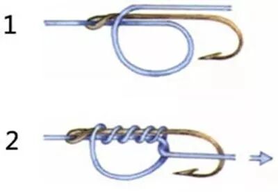 下图是一种绑鱼钩的方法。线结的绑法可以跟下图一样,不过线要在线圈里面盘转6次,下图只是4次而已。