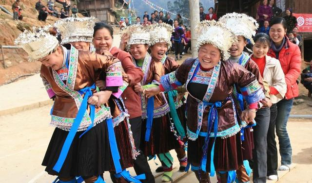 板鞋竞速是壮族民间传统体育项目,起源于明代广西壮族女英雄瓦氏夫人。她曾以板鞋作为“秘密武器”,让三名士兵同穿上一副长板鞋一起跑步,训练士兵之间的团结性以及协作能力。后南丹县那地州壮族人民模仿瓦氏夫人练兵方法,开展三人板鞋竞技活动自娱自乐,相袭成俗,流传至今。图为广西融水县洞头乡岑碑苗寨苗家女在庆“三八”趣味活动中参加多人板鞋竞速比赛。 新华社发