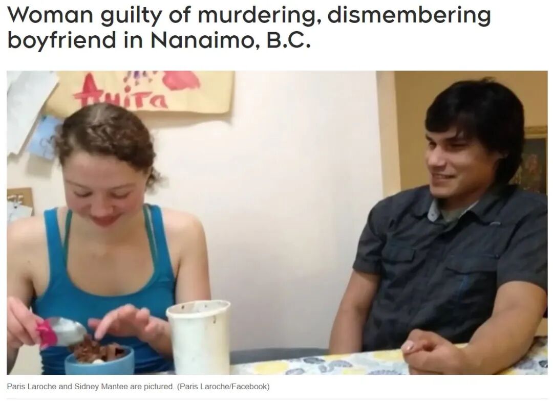 听起来,是不是既残忍冷血又精心谋划?这名女子之后被控一级谋杀罪(first-degree murder)和干扰人类遗骸罪(interfering with human remains)。本周五,审判结果出来了,这名现年28岁的女子,被判有罪,但相对被指控的罪名,她仅被判处了较轻的二级谋杀罪(second-degree murder)以及干扰人类遗骸罪(同指控罪名)。究竟是判的太轻法律不公,还是事出有因内有苦衷?我们来听听卧底警察从女主那里挖到的案件背后的故事……女主 Paris Laroche 和 被害人 Sidney Mantee 是居住在加拿大BC省 Nanaimo 的一对同居小情侣。2020年初,被害人 Mantee 消失了。但当时可能正值口罩封锁期间,很多时候大家闭门不出,日常社交也很少。直到2020年10月,人们才发现 Mantee 失踪了!