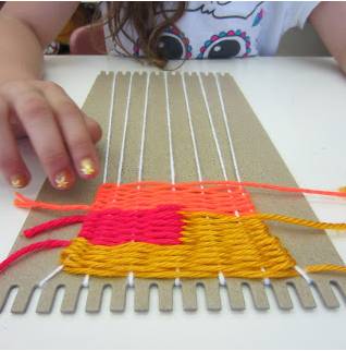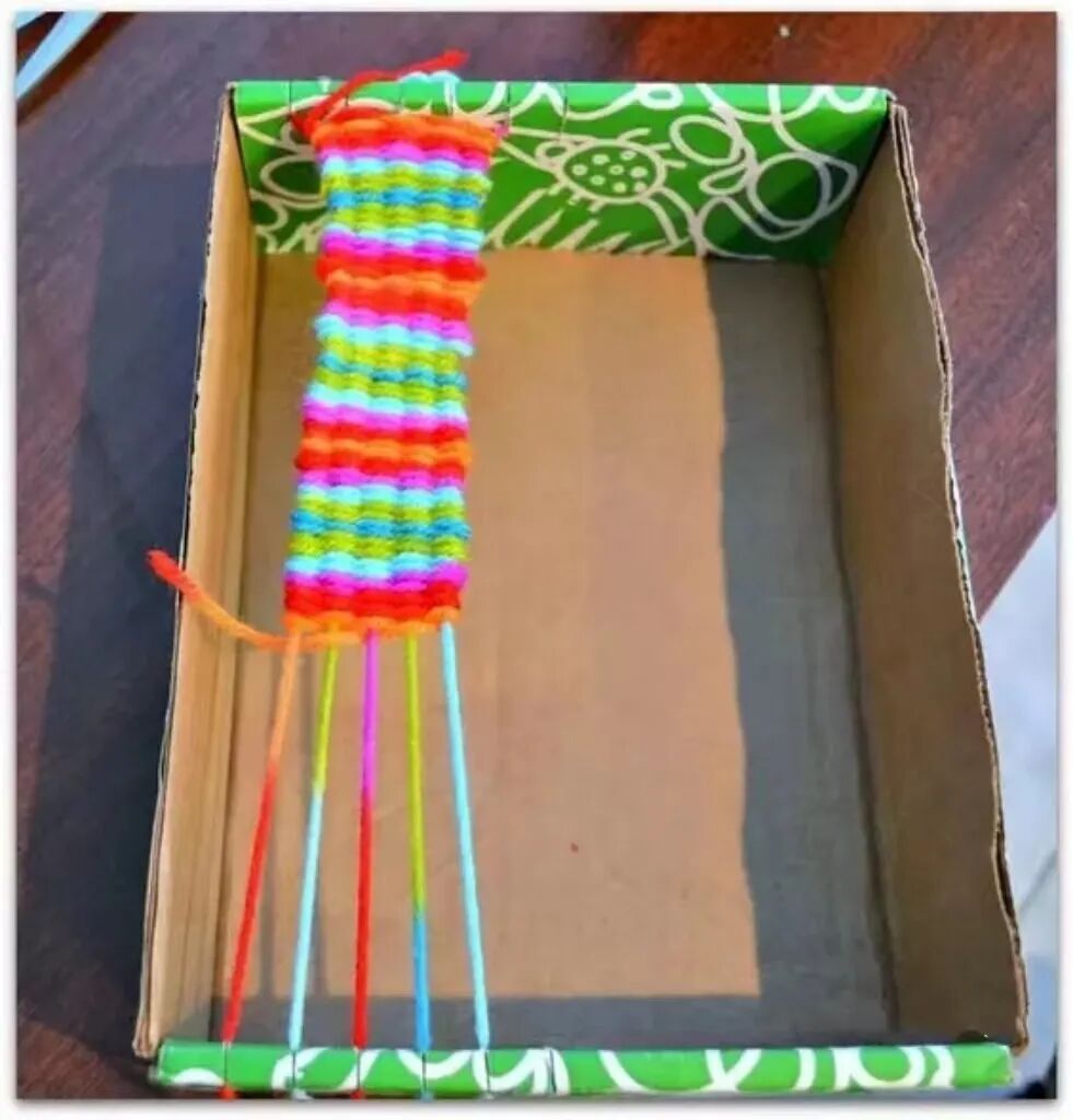 为了便于孩子们制作,用纸盒来开孔编织会更加便利,也更容易收纳。