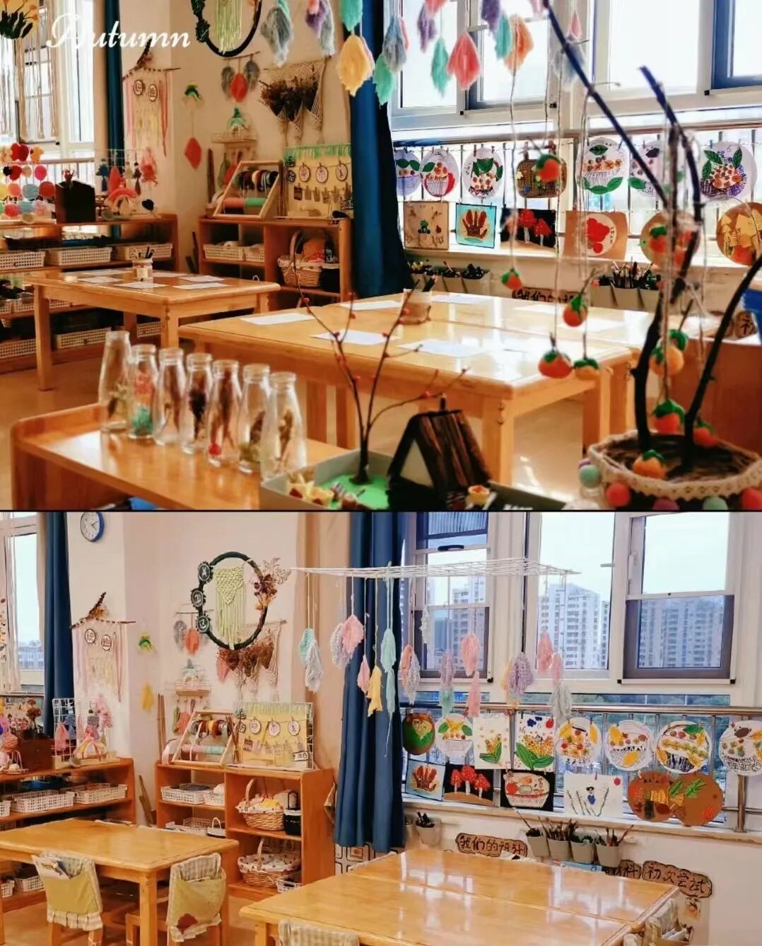 或者将孩子的编织作品挂在幼儿园走廊上,不仅让走廊变漂亮了,而且充满了浓浓的编织氛围,再一次激发了幼儿的编织兴趣。