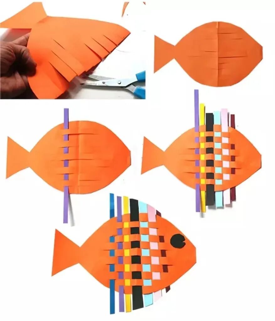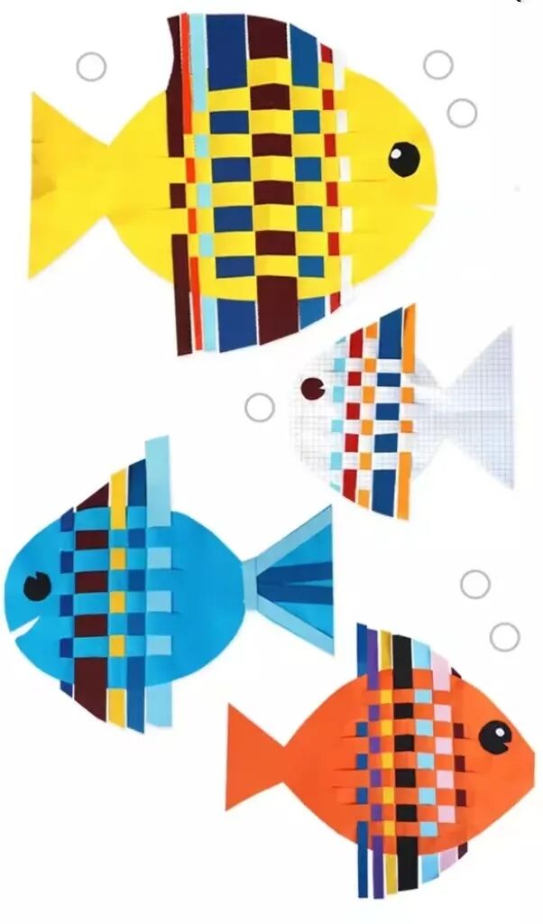 第三步:用不同颜色的纸条以一上一下的编织原理,穿插在裁剪好的鱼身上,这个过程一定要小心谨慎,保护好小鱼不要弄破哦