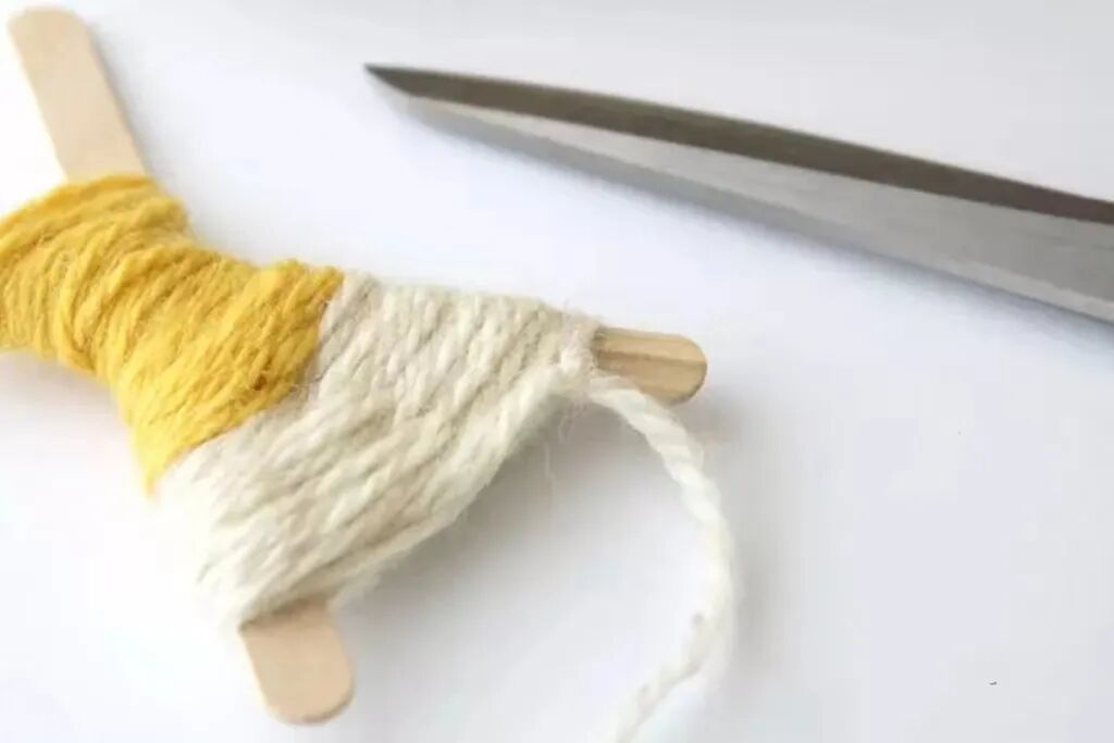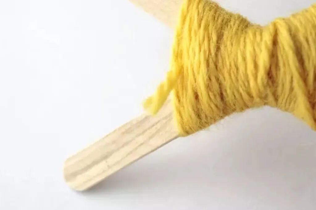 注意毛线不用缠绕到冰棒棒的尽头,留出一部分会更容易固定。