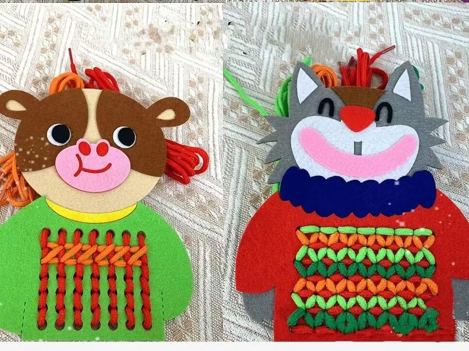 如果小年龄较小,可以负责缠绕毛线,捆扎和剪毛线由老师帮忙完成。