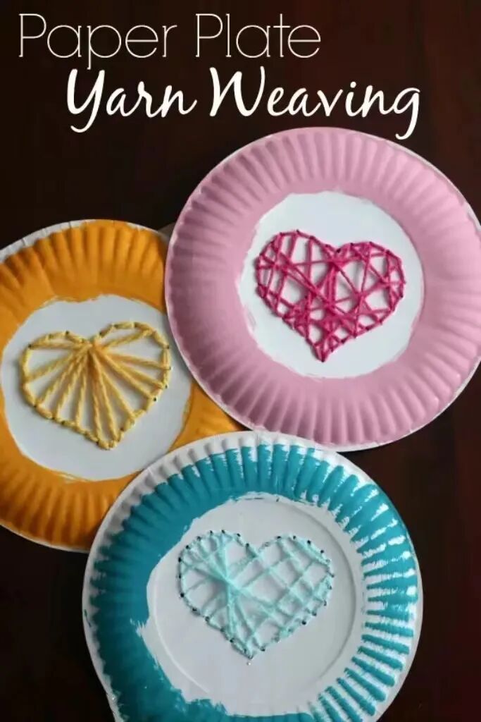 纸盘桃心:纸盘是编织区中非常重要的制作材料,因为其质地相对柔软,容易剪裁,也可以上色,因此可塑性很强,深受老师和孩子们的喜欢。
