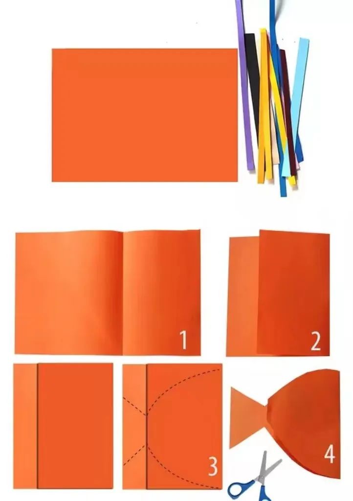 第一步:用卡纸裁剪出一个小鱼的模型,跟着图片中的步骤做起来吧。