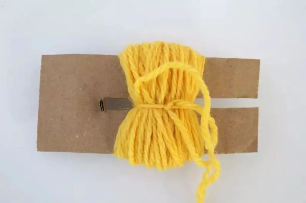 第一步:先用两端裁剪出凹槽的纸板将毛线固定好。