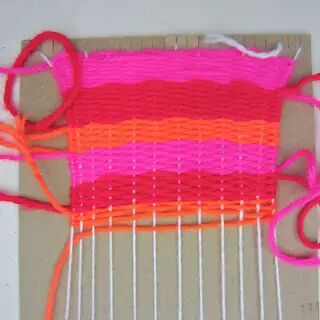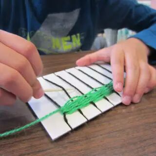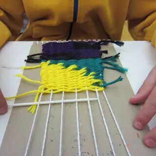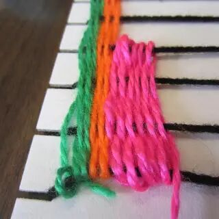 第三步:用儿童针带毛线一上一下的穿梭编织,这个过程需要孩子们有更多的耐心和细心。