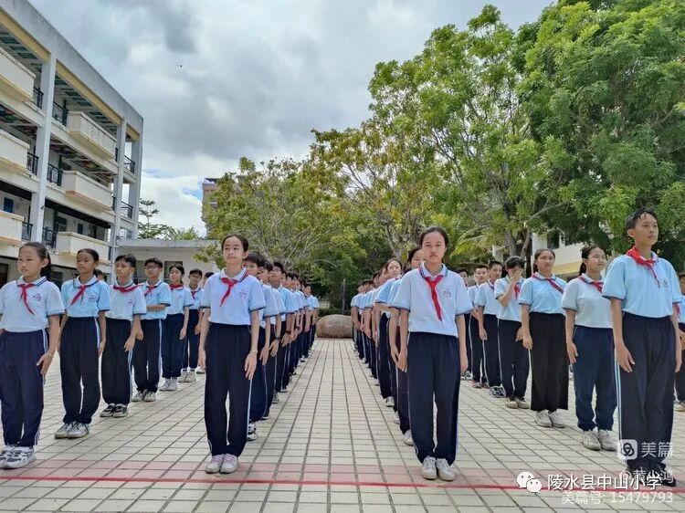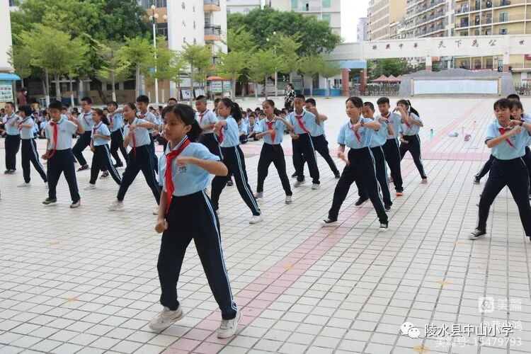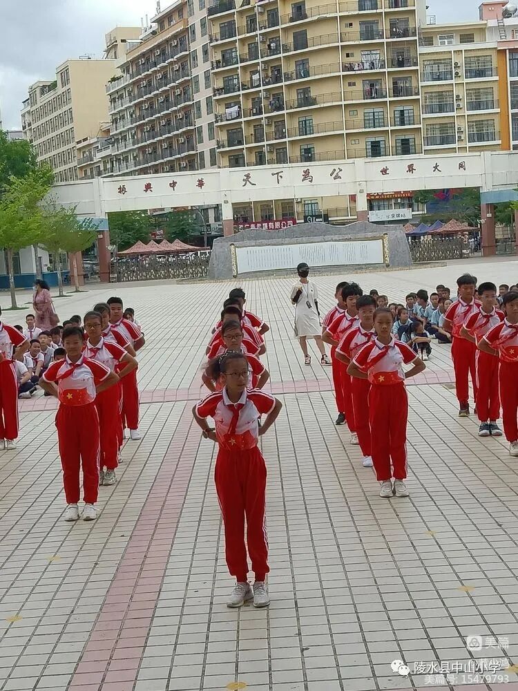 比赛场上,同学们发扬团结一致、奋发向上的精神,用统一的着装、整齐的步伐、标准的动作、飒爽的英姿充分展示了中山少年积极向上的精神。