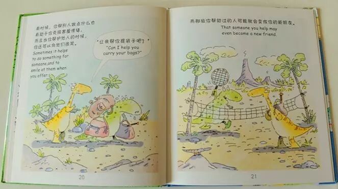 “那就试试看我们能不能帮助你,”她爸爸说,“当你见到其他恐龙时,你不需要躲得远远的。
