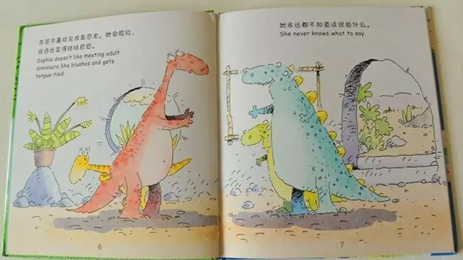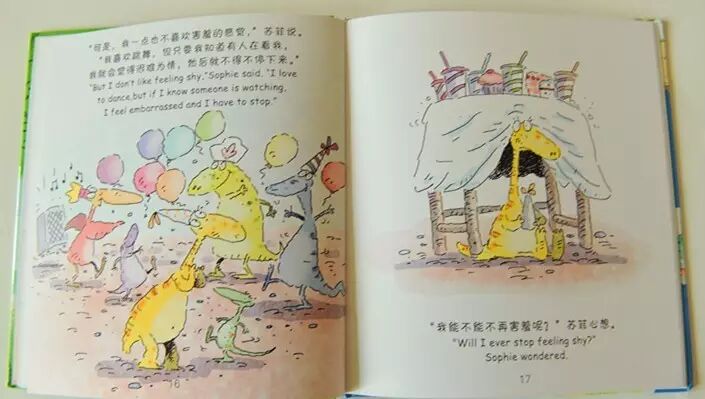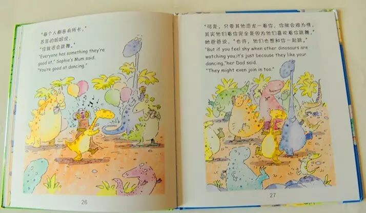 “可是,只要其他恐龙一看你,你就会难为情,其实他们看你完全是因为他们喜欢看你跳舞,”她爸爸说,“也许,他们也想和你一起跳。”