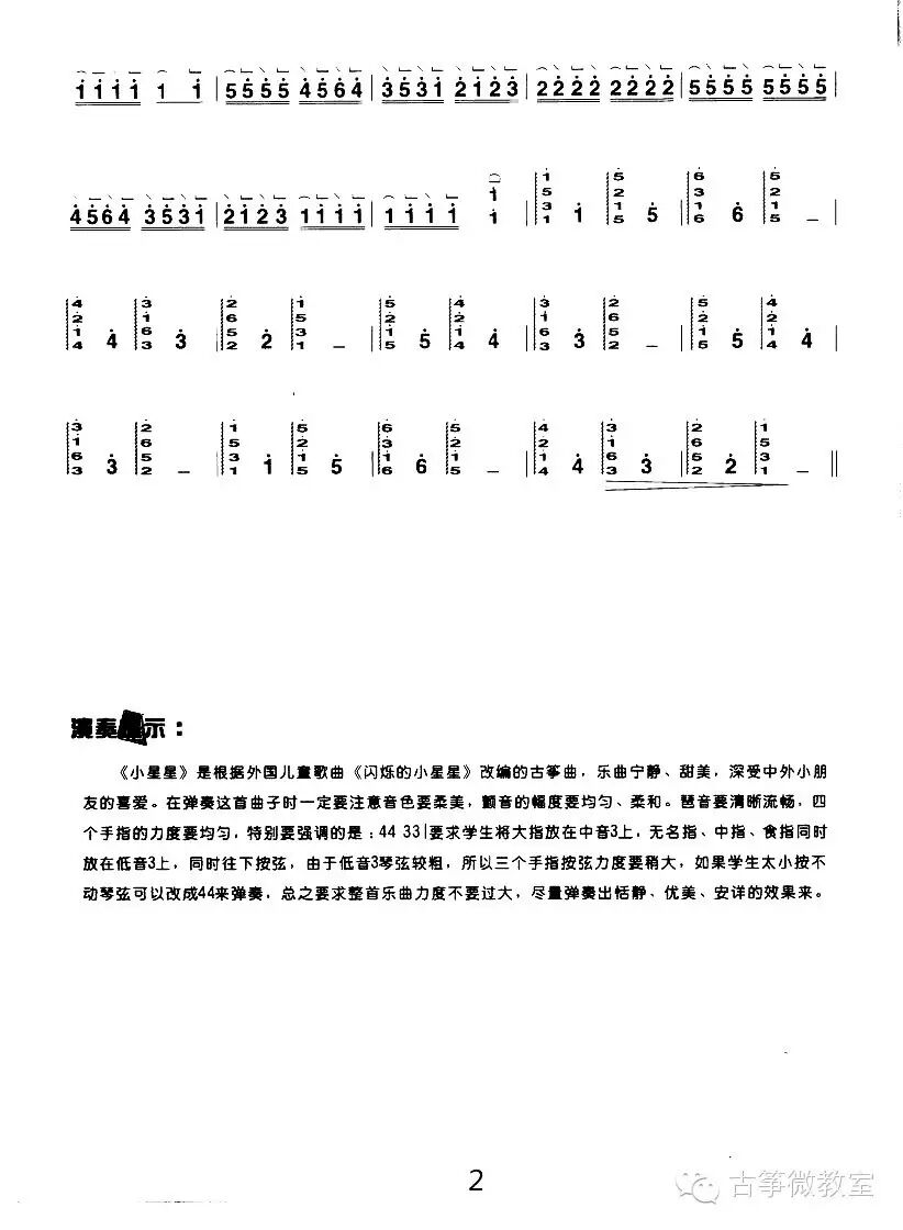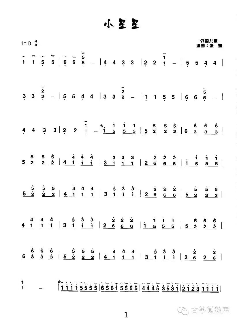 该曲的原版取材于Jane Taylor的布画儿童图册《Twinkle Twinkle Little Star》。原书的故事为一个天上的小星星带领凝望星空的女孩遨游太空的美丽故事。该曲就是在此基础上改编而来的。因小星星古筝简谱旋律简单明快,英文歌词童真雅致,朗朗上口,而成为世界范围内广为流传的英国儿歌。过去一直演唱的小星星中文歌词并不是英文原版歌词的原意,当时这首英文儿歌传入中国后,由于各种原因由老一辈文学工作者重写歌词才成为了这首耳熟能详的《小星星》。