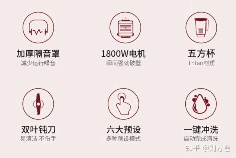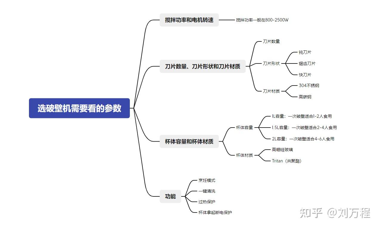 目前市面上破壁机的选择有很多,但也有一些商家挖坑,如果你不熟悉破壁机,很容易买到价格与功能不匹配的破壁机。 为了方便读者更直观了解各价位破壁机的区别,在本文开端,我先把破壁机区分为三个价位。(0-1000元档、1000-2000元档和2000元以上档) 先写产品总结,如果觉得文章过长,可根据价位选择这几款。 推荐型号1:西屋WPB09J7 推荐型号2:宜盾普EDC-PB1S 推荐型号1:西屋WFB-E15 推荐型号2:柏兰德650 推荐型号3:惠人M100-SBIA05 本文目录 接下来,开始破壁机的相关正文部分。 破壁机是功能最全的料理机,涵盖了榨汁机、豆浆机、绞肉机、研磨机等多种机器的功能。 破壁机的优势: 破壁机即利用机器内高转速的刀片来破坏果蔬细胞壁,让果蔬的营养更好释放,当然这只是破壁机的基础功能,更多破壁机的用途下面来说道。 破壁机的榨汁效果远高于普通榨汁机。 普通榨汁机由于转速慢,榨汁时需要加入水,并且果汁中会有很多残渣需要过滤; 而破壁机则利用大功率、高转速刀片,榨果汁时无需加水,榨出来的果汁细腻无渣,真正实现果蔬原汁原味1比1还原。 与豆浆机功能一致,将浸泡过的黄豆与清水倒入豆浆机,大约30分钟即可完成豆浆制作。 与绞肉机功能一致,无需加水,加入肉块,开启后不久即可搅拌成肉糜。 辣椒粉、药材粉、芝麻粉、杏仁粉、米粉等都可以研磨。 高端的破壁机,可以把带刺的整条鱼煮成浓郁的鱼汤,另外菜粥、海鲜粥、奶油蘑菇汤、番茄汤等只要能想到的都能用破壁机来烹饪。 高端价位破壁机在煮汤的同时,可以放入蒸盘高温蒸食材。 破壁机的搅拌功率一般在800-2500W。 搅拌功率和电机转速其实是给消费者看的数据,有一定参考价值,但真正影响破壁机好坏的是它的电机,就相当于人的心脏。 搅拌功率影响破壁机能耗,电机转速则影响破壁食材的细腻程度,这里老刘推荐选择28000转/分以上的破壁机。 破壁机能耗由搅拌功率决定,食材细腻程度由电机转速决定。实际上,破壁机的转速能满足20000转/分钟以上即可满足一般中国家庭的使用需求。 看到很多博主在说刀片数量越多,破壁出来的食材越细腻。 这其实是不严谨的说法,食材破壁后的细腻程度并非是刀片数量所决定的。 食材破壁后的细腻程度取决于其本身的研磨效率,研磨效率的核心是电机扭矩(转速)和搅拌功率,当这两个核心的指标满足的情况下,刀片其实是越多越好的,当然也会受到刀片结构的影响。当然,相同搅拌功率,不同电机,研磨效率也会有所差异。 破壁机的刀片形状分为钝刀片、锯齿刀片和快刀片。 市面上大部分破壁机采用的是钝刀片,钝刀片功能性最强,破碎高韧性、高硬度食材都适用。 目前主流的刀片材质分为304不锈钢和高碳钢。 高碳钢相比304不锈钢,热处理性更好,硬度更高。 304不锈钢刀片的破壁机价位一般在千元以内。 高碳钢刀片的破壁机价位一般在千元以上。 破壁机的杯体容量一般设定在在1-2L。 容量没有太多讲究,但如果你要节省时间,一次完成破壁食材,那我下面简单说下容量的使用人数。 杯体材质只建议选择高硼硅玻璃或Tritan(共聚酯),两者都不含不含双酚A(BPA)。 Tritan是一种塑料材质,比起高硼硅玻璃,Tritan的韧性、水解稳定性、冲击强度、耐腐蚀性更好些。 功能指的是烹饪模式、一键清洗、过热保护、杯体拿起断电保护等,功能越齐全,价格也相对越高。 西屋的一款新品破壁机,这台机器主打高转速,转速高达43069r/min,杯体内壁有4棱扰流柱的设计,打出的食物口感非常细腻。 追求饮品口感细腻无渣的,可以选它!无论是米糊或者豆浆,口感都很棒,甚至有主播在直播的时候用它展示搅打玻璃。 五重降噪技术,理想环境下机器运行时噪音最低为53dB。杯体底部采用的是麦饭石涂层,更耐磨,而且清洗起来更方便。 这款的容量为1.1L,一家三口使用完全没问题,拥有10种预设菜单,一键操作方便快捷。同时支持12h预约功能,晚上预约,早上即能享受早餐。 安全性方面有提杯和提盖保护,这两个对于厨房新手来说很友好。综合来说,在四百元价位,这款是很不错的选择。 如果喜欢小型破壁机,可以选择这款西屋WPB08J40,配备隔音罩,转速高达27587转/分,同时拥有10种一键菜单,豆浆、果汁、浓汤等都能制作,非常实用,适合三口之家。 这款宜盾普的破壁机在同价位中性价比非常高,各方面都是比较出色的。 破壁机最大的痛点就是噪音大,宜盾普在这方面做了很大的提升。这款机器在使用时声音低至50db,采用七重降噪技术,加厚PC隔音仓包围搭配消音扩张风道减少了噪音的剧集,内部为同轴电机,还将内胆升级为U型发热合金,用料相当扎实。 材质方面,刀头配备了上下双层8叶精钢破壁刀,上层为短型刀设计,有效提升了多维度搅打的效果,而且转速高达30000转/分钟,可以让食材破壁的更加细腻。 功能方面,有豆浆、果汁、浓汤等8种菜单可选择,支持搅拌和加热,搅拌有9档可以选择。同时提供了一键预约和一键清洗,使用之后省去了手动清洗的麻烦。 操作性方面,杯身上带有IMD触摸屏显示,菜单温度都在其中调节。在进行食材加热时,由于采用了UR立体发热技术,可以有效防糊底,食材受热更均匀,而且蒸汽阀的设计可以防止食物溢出,这两点是相当实用的,料理时不用时刻守在机器旁边。 整体来说,在这个价位是属于性价比和功能都不错、很值得选择的一款机型。 市面上很多百元价位的破壁