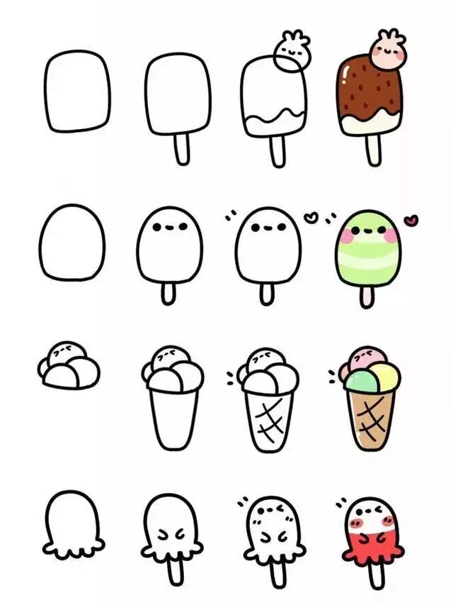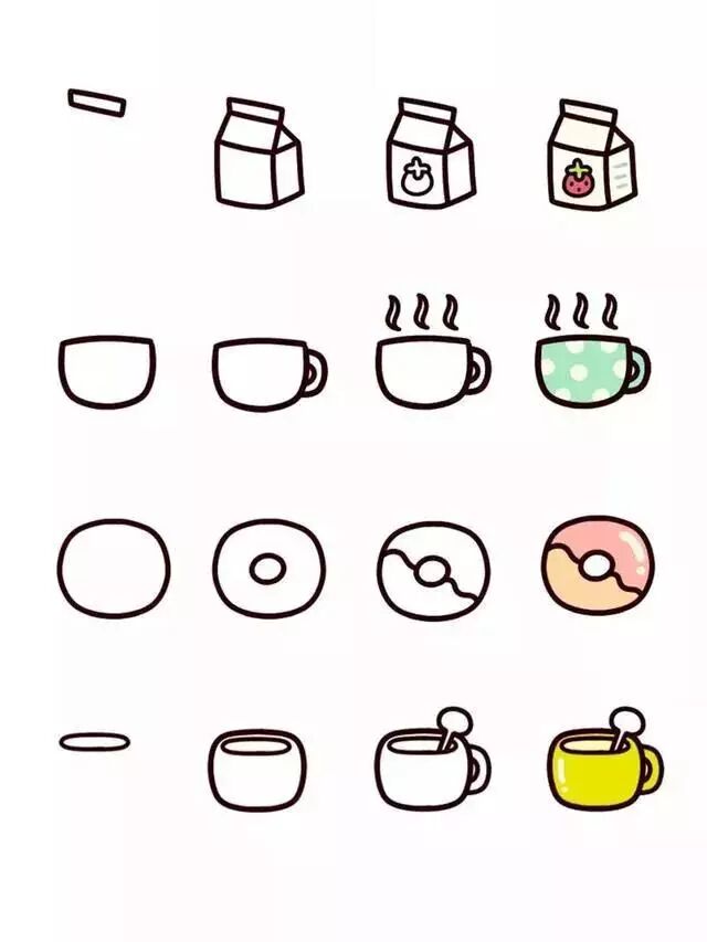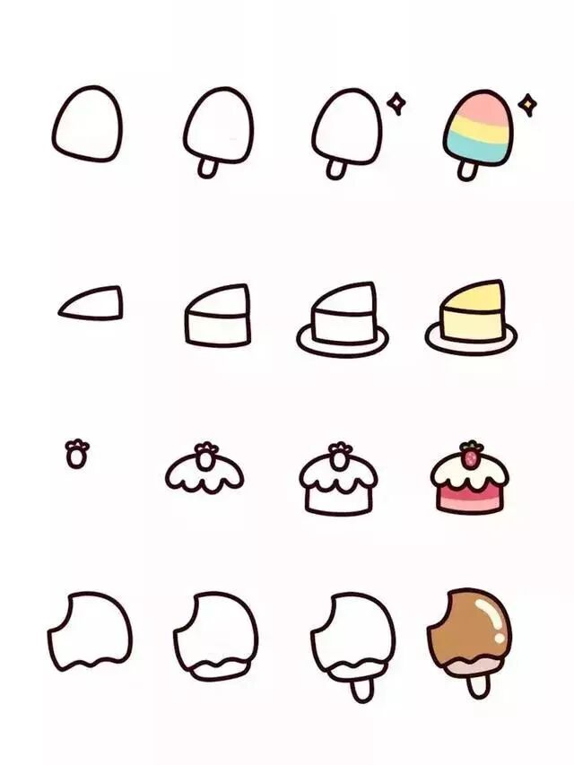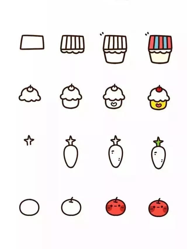 声明 | 因未能确认首发公号信息,故未注明。本文转自“幼儿园美术”,若涉及版权问题,请作者及时联系编辑,美食简笔画我们将第一时间进行处理。