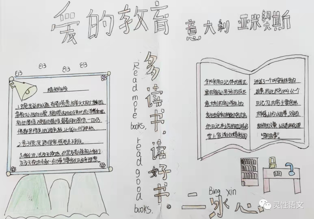 每次看到同学们的作品我都由衷的震撼和赞叹,同学们的想象力和创造性以及严肃认真的学习态度真是了不起!看得出孩子们爱读书,会读书,会思考,会创造。期待看到更多同学们的优秀作品。!