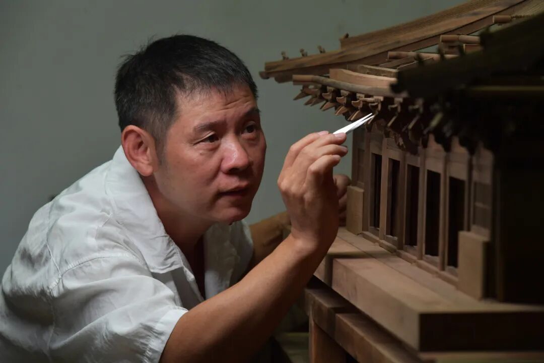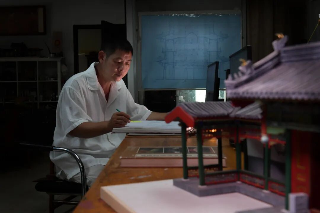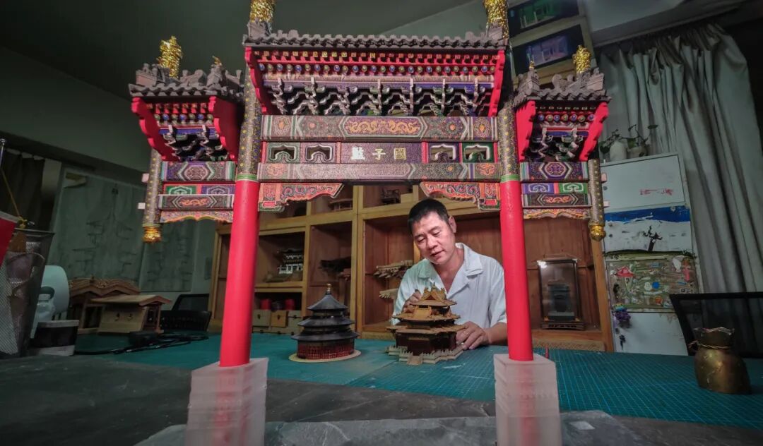 杨亦 中轴线遗产建筑天坛祈年殿、停放着自行车的胡同修车铺、地震电影物理特效景观……宋庄艺术家杨亦凭借一双巧手将中轴线的古建筑、胡同里的老场景、儿时的记忆和乡愁浓缩为一件件小巧的模型,于方寸间留住经典、再现古建芳华。 复刻“中轴线”留住古建魂 杨亦的工作室“空的空间”位于宋庄一处公园深处,茂林修竹,颇有“大隐隐于市”的神秘感。走进去,淡淡木香扑鼻而来,桌上、架子上摆满了各式各样的微缩古建模型,国子监牌楼、天安门城楼……每件模型都精致细腻,匠心独运,置身其中仿佛来到一条时光隧道,将那些旧城往事一一呈现在大众面前。 工作台上,一盏台灯明亮,灯下之人便是杨亦。一个个微小却精致的构件在他手上把玩,很快一个斗拱便拼装出来。他的手边还摆着多年前的得意之作——按1:200比例精细复刻的天坛祈年殿。 “这个祈年殿我用了2000多枚构件拼装,涉及好几百种营造结构方式。拆了它,你基本就知道天坛当年是怎么建的了!”杨亦不无得意。但这件作品最让杨亦得意的,还得是檐部的和玺彩画。这是最高级别的建筑才采用的重工彩画,杨亦自觉,这件作品的彩画部分也代表了他在绘画上的最高成就。“这件作品就是为了挑战自己才做的,你见过一厘米不到的龙吗?”说着,杨亦示意记者再靠近些,即便如此,记者仍然拿起手机拍下放大才终于看清了檐壁上的龙纹图案,1毫米长的龙居然能看清爪子,这着实不可思议。杨亦说,整件作品他和团队用时近三个月,其中彩画就用去了三分之二的时间,精细度甚至达到了唐卡的绘画难度。通过杨亦在灯下摆弄这些作品的样子,不难想象他曾握着笔尖只有0.2毫米的画笔在0.5毫米的最小构建上勾勒龙形的样子。 通过这件作品,观者会对微缩景观有了大致概念。所谓微缩景观,就是将现实世界已存在或已描述的场景,等比缩小并用不同材料、工艺制作出来的模型。其制作工艺非常复杂,前期需要精密测量换算绘图比例,中期需手工搭建模型整体结构、设计构件,成品还要使用雕刻、绘画等技艺来完善细节。 中轴线见证了元、明、清三代兴衰更替,是北京城独有的文化符号,今年7月,“北京中轴线”申遗成功。这条无形的“纽带”串联起千年的古都记忆和辉煌,故宫、端门、天坛等15处遗产建筑展示了中国古建筑独有的风韵。其实,早在2001年,杨亦就尝试将中轴线上的单体建筑用微缩模型的方式记录下来。彼时,从中央戏剧学院毕业的杨亦着迷于古建拼装。恰逢北京申奥成功,杨亦尝试着将古建筑,尤其是中轴线上的单体建筑制作成微缩模型,让它们成为宣传和传播古建文化的有力载体。 在杨亦看来,能否做到对历史的还原是微缩模型制作的“点睛”之处。“微缩景观作品的灵魂,是它所承载的历史与记忆,是活的立体的古籍!”杨亦说。古建筑不是冰冷的砖石木砌,而是一段段生动的历史、一个个辉煌的故事。 “中国的礼制建筑都很好看,这些中国传统建筑的最大魅力在于文化积淀,这种特定的文化积淀与建筑结构上的生活痕迹,会勾起人们很多的想象和记忆。”在杨亦看来,中轴线上的古建筑不是遥不可及的历史遗迹,而是触手可得的文化瑰宝。“中国许多古建筑都是木制结构,还能保存多久?1000年?10000年以后呢?做成微缩景观,尤其是做成可以拼装的木结构模型套材,它们就永远不会消失了!” 物理特效还原电影现实 20年间,杨亦不断探索创作方向,直到电影《无问西东》的导演找到了他。 1989年盛夏,北京的筒子楼里演员黄晓明饰演的角色透过窗户,梦见自己小时候观看马戏的情景……其实,电影里的筒子楼和大马戏棚就是微缩景观特效模型,正出自杨亦之手。 这部制作精良的电影,抛开故事情节不说,单从场景上就力求每一个细节有据可考,这就包括1:25复刻老北京筒子楼。在杨亦工作室的一处吊柜上,依然能看到当年的那个三层筒子楼,实际上只有50厘米高,70厘米长。仔细看,每家的窗户都不一样,有挂中国结的,有的堆满杂物纸壳的,有的则糊了半边窗户纸……老北京的生活细节被复刻得栩栩如生。 为了达到导演要求,历时两年,杨亦和他的团队精心打造这一场景模型。一辆自行车经过30多道工序,电线精确到0.04毫米,道具种类超过一百余种。从建筑材料研究院的五次探访,到近十个花卉市场的寻觅,逾百万的文字资料和近17万张照片的参考,每一个细节都力求还原历史的真实。 筒子楼的旁边,就是片中的马戏棚。为了复刻这个马戏棚,杨亦和他的团队专门跑到河南洛阳,寻找那个时代的马戏团资料。“马戏棚中的帆布系绳的铁环,缩小后只有一毫米不到,我们是找到一个老修鞋师傅帮忙给解决的,他用雨伞的一个小零件替代,市场上根本没有卖的。”杨亦说。这种对细节的执着,保证了作品的真实性。 “真实”是他的执着。比例的精确是作品真实性的基础,生活情景、逻辑、岁月痕迹都是真实的体现。即使一块砖的厚度缩小后只有2.1毫米厚,杨亦也会用这么小的砖块一块一块按建筑结构把房子“盖”好。 筒子楼这种具有中国特色的住房样式,曾见证了无数家庭的喜怒哀乐。“复刻筒子楼不仅是对过去的一种怀念,更是一种致敬。”杨亦希望通过这种方式,让逝去的历史得以保存,感受当时的气息。 即使是在电脑特效飞速发展的今天,电影物理特效因为“真实”仍然有着一席之地。杨亦坚持