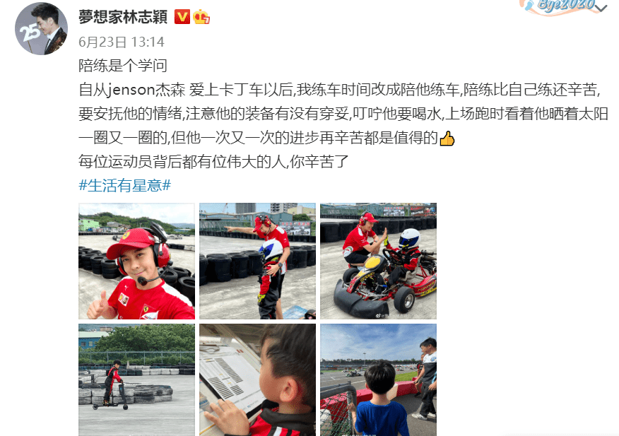 在林志颖的社交平台,经常看到晒出和Jenson玩卡丁车的照片,可以看到这个幼子也有着和父亲相同的爱好,作为父亲,自然是支持和陪伴的。