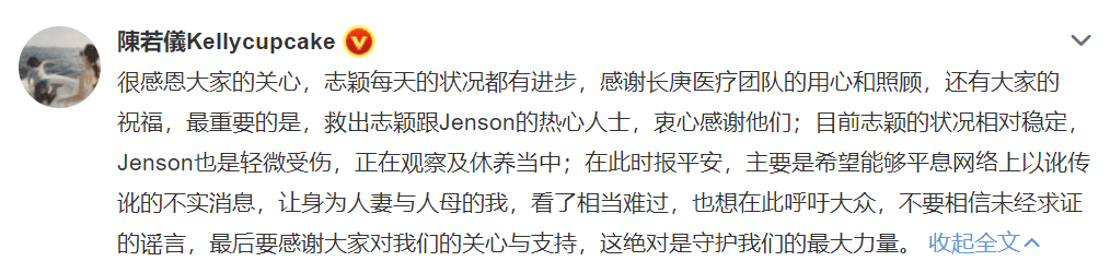 而如今妻子陈若仪也公开发声,一方面表达了对所有关心帮助的人感谢,另一方面也透露了林志颖和儿子的健康状况,当然还有对各种谣言争议的回应。