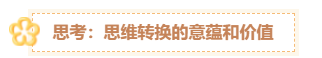 路。”思维转换具有创新性、审辩性、灵活性、全视性等特点,有利于摆脱固定的习惯性思维的束缚,提升学生的创新意识和应变能力。 思维转换