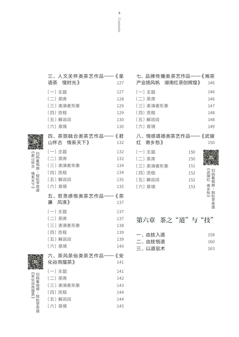 茶,原本只是一片绿色的叶子,因其滋味丰富和具有保健功效而被发现应用,成为人们生活中如柴米油盐一般不可或缺的物品。历代文人以茶入诗,将胸中的宁静淡泊、豪情壮志都尽数揉在茶诗、茶画之中,茶的生命开始有了更高层次的意义。 茶,如同一座桥梁,连接着古今中外,连接着人们的心灵与情感。那嫩绿的叶片,在水中舒展,仿佛在诉说着岁月的故事。品茶之时,是心灵的宁静与回归。在喧嚣的尘世中,寻一方茶席,煮水烹茶,让浮躁的心慢慢沉淀。 《韩非子·解老》云:“万物莫不有规矩。”中国茶道,是富含丰富文化内涵的饮茶技术规范,即从茶园到茶杯的全程规范,包括事茶活动中的技术之道、礼仪之道、修身之道。 茶道技术包括了茶园生产、茶叶加工、贮藏保管、烹煮茶饮等技术规则。正是通过这些细致入微的技术之道,茶道才能展现出茶叶本身的色香味,同时也为品茶者提供了一种全方位的感官体验。 今天,让我们一同走进中国茶道的技术之道,欣赏那如诗如画的茶艺之美、感悟那深邃悠远的茶文化内涵吧。 茶艺表演《你来得正是时候》 视频赏析 想要了解更多 茶道技术以及茶艺表演 关注我社出版新书 《中国茶道·技术之道》 (扫码看视频·轻松学茶道) 扫二维码 购书享优惠 作者:朱海燕 堵茜 责编:郭晨茜 定价:78.00元 折扣价:48.00元 内容介绍+内文赏析 本书内容涵盖茶艺演变历程、各类茶艺基本规范、茶艺编创原则、茶艺编创技法、茶艺作品赏析以及论茶之“道”与“技”。 书中图文并茂并配有视频,采用情境式、启发式、互动式和探索式编写方法,带领读者走进茶园、工厂、茶馆、市场,让读者在体验中感知“技术之道,让广大民众领略到“中国茶道”的物质之美和精神之美。 全书配有7个唯美茶道视频 作者简介 朱海燕,湖南农业大学教授,湖南省技能大师工作室领办人,兼职中国茶叶学会茶艺专业委员会副主任委员,湖南省茶叶学会常务理事,主要从事茶文化与茶业经济研究,在茶道、茶美学研究领域成果颇丰。主讲国家一流本科线上课程——《中国茶道》《中华茶礼仪》。出版《明清茶美学研究》《诗画里的中国茶》等专著与教材15部,主持科研项目30余项。曾出访泰国、美国、韩国、葡萄牙、科威特等开展茶文化交流。 堵茜,女,湖南常德人,湖南农业大学茶学硕士,湖南生物机电职业技术学院茶艺与茶文化教师。湘西州第二届职业技能大赛茶艺师赛项金奖,被授予“湘西州技术能手” “湘西州五一劳动奖章称号”。第七届全国茶业职业技能竞赛茶艺项目银奖。 目录 左右滑动查看更多 责编:刘 叶 好消息 《读懂“千万工程” 推进乡村全面振兴》出版发行 国家生物安全领域力作《草地贪夜蛾的研究》重磅推出 家乡,每个中国孩子都值得拥有的情感记忆![]()