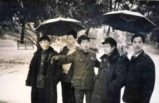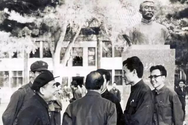 1981年冬,潘维明(右一)、华人德(左二)等陪同曾竹韶(左一)、盛扬(右二)为蔡元培铜像选址。华人德作为学生代表,全程参与了两尊铜像的选址工作。他说:“中央美院雕塑系曾竹韶教授、傅天仇教授两次专程来北大,为铜像选址。当时比较年轻的盛扬、钱绍武,如今也都是八十多岁的老人了。他们开始看中了未名湖的一个小岛,说这个地方很安静,适合建蔡元培铜像。我说此地不妥,因为这个岛要从北面绕过来,平时也只有男女同学谈恋爱才到这里来,如果铜像建在这里,瞻仰很不方便。大家听我说完,都笑了,觉得有道理。“蔡元培铜像建在未名湖西南、钟亭的小山下。那里有五条小路交汇,铜像面向东方,迎着朝阳。铜像一侧有一棵数十年树龄的雪松,亭亭而立。我当时提出,最好在另一侧移栽一棵雪松,这样就因对称而显得肃穆了,王路宾校长接过我的话说:‘要对称干什么,这样不是很自然吗?’直到现在,蔡元培铜像周围,一直保持着原来的样子,自然而亲切。“李大钊铜像,专家们最初选址于临湖轩(燕京大学校长司徒雷登的寓所)的南面,现在基座还在。后来,校领导或许出于政治上的考虑,决定移至俄文楼前面。那里是一个花园,中央正好有块空地,四角为四棵松树,铜像背靠俄文楼,前面是司徒雷登的两个女儿曾经住过的南阁、北阁,就像双阙,既庄严,又得体。“李大钊铜像坐东朝西,是美中不足之处。为什么这么说呢?道理很简单,雕塑朝南最好,这样阳光移动的时候,面部一直有立体感;朝北就不好,比如,苏州火车站南广场的铜像是朝北的,脸整天都是黑的;李大钊铜像朝西,下午看,效果很好,但早上看,脸是黑的。有没有补救的办法呢?当时就有人提出,能不能在铜像周围安装地灯?中央美院的教授讲,雕塑不能打地灯,地灯一打,面部就会变得很恐怖,如果要打灯光,只能从高处向下打。“两尊铜像的设计、铸建,得到了中央美院、首都钢铁公司的支持。王校长讲,建像活动虽是学生发起的,但对其他单位的无私帮助,学校应该出面致谢,这是礼节。为此,我们还陪同王校长去中央美院,向江丰书记表示谢意,并拜访了参与设计的专家教授。”曾竹韶、傅天仇分别承担了蔡元培、李大钊铜像的设计任务。华人德协助两位艺术家,走访蔡元培、李大钊的生前好友、学生、亲属,参与搜集、甄别两位伟人的相关资料。傅教授设计的初稿,是李大钊就义时的形象。华人德认为,北大不是刑场,校园里再现的,应该是在北大当教授和图书馆主任的李大钊,要以和蔼诚挚为主调。傅教授欣然采纳。由于这一时期的照片很少,于是华人德就去找李大钊的儿子、时任中国人民银行行长的李葆华。后来,又找到了李大钊的女儿和李大钊生前的同事、好友。傅教授综合大家提供的资料,参照李大钊后代的部分体貌特征,数易其稿,终于塑造出了穿长袍、戴眼镜、剪平头的李大钊的知识分子形象。