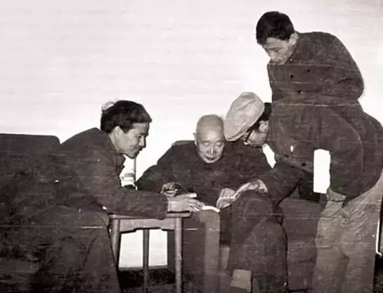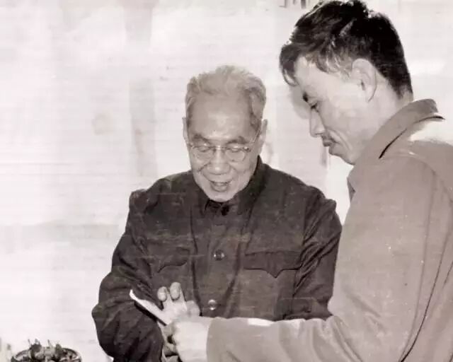 1982年10月16日,许德珩(右二)、刘仁静(左一)、华人德(左二)在京西宾馆13楼餐厅。华人德回忆说:“当时,许德珩先生对刘仁静讲:‘中共六大时,你拿了把菜刀往脖子上抹,是我抢下来的。’刘大笑。”(蔡怀心摄)许老书法很好,华人德经常登门请教,其中有三次是在北京西山。因为许老当时正在牟小东的协助下,整理回忆录《为了民主与科学》。有一次,华人德写了一副对联,恭祝许老颐安。许老收下对联,对华人德的字夸奖一番,还引用北大五四时期流行的一句话“胆大脸皮厚”来勉励他。告诫华人德不要受前人束缚,要跳出樊篱;写的字要经常给懂行人看,要听得进人家的批评。许老还以“强勉学问,陶冶性灵”题赠,期望他有更大的进步。华人德向许老提出,希望加入九三学社。许老当即表态:“欢迎!欢迎!”牟小东在一旁说:“小华,民主党派不吸收在校大学生,等你工作后再参加,我来作介绍人。”1984年3月,华人德毕业一年后,许老以九三学社中央委员会主席的身份,特许华人德加入九三学社。许老的秘书、九三学社中央宣传部副部长牟小东是华人德入社的介绍人。1982年五一节前后,北大的招生简介发往全国各地。招生简介的正中位置,是王力先生的《赠诸生》诗墨迹和一幅大照片。照片上的王先生手执毛笔,面向一个年轻人,似在倾听,又像在询问。这个年轻人,就是华人德。这张照片,拍摄于北京大学尊师爱生座谈会的签到现场。华人德回忆说:“1982年4月,春暖花开,我读大四,即将毕业。有一天,潘维明来找我,要我参加一个座谈会,提醒我事先备齐笔墨纸砚,届时做好会议签到。说与会者多是一、二级教授,签到簿学校要存档。于是,我就到学生会领了点钱,骑车去荣宝斋买了宣纸册页和笔墨。“座谈会在图书馆一楼贵宾室召开,我提前在门口摆好摊子。贵宾室大门紧闭,不相关者不许进入,门厅里静悄悄的。不一会儿,教授们陆续来了,签名之后,进入贵宾室。恭立在门口的学生代表,赶紧凑过来看教授的签名,不认识的字就问我,并互相询问是哪个系的?熟悉这些学科的同学,会觉得这些如雷贯耳的名字,今天终于对上号,见到了真身!“季羡林先生的签名,一挥而就,十分潇洒。在当时的一级教授中,他最年轻,刚过七十。我说:‘季先生,您写字手不抖。’‘嗯,一点不抖!’他边说边往里走。过了一会儿,王力先生由学生搀扶着走进来。他看到桌子上摆着册页、笔砚,就从上衣口袋里掏出一张纸,照着题了一首诗,诗名是《赠诸生》。我一看‘诸生’二字,就对王先生说,您把我们看作太学生了。记得有老师开玩笑说过,北大的校史应从汉武帝设立太学时算起。王力先生听到我在说话,就抬头问我:‘上款怎么写?’我告诉他,这次是北京大学尊师爱生座谈会,就照这个题吧。他写好,又由学生扶着进了会场。“贵宾室响起了讲话的声音,摄影师也退了出来,我知道会议开始了,该来的都来了,就收起签名册,进入会场。正对门是一个三人沙发,中间坐着党委书记韩天石,正在讲话,左面是陈岱孙先生,右面是王力先生,两边沙发上坐的有季羡林、郭麟阁、庄圻泰、王瑶、邓广铭诸先生。学生代表都坐在靠墙的折迭椅上。“韩书记讲完,就请陈岱孙先生讲,陈先生摆摆手,表示没有什么话要说。接着请王力先生讲,王先生就念了一遍《赠诸生》诗。接下来,韩书记让教授们自由发言。邓广铭先生讲:‘我一不会做诗,二不会……’郭麟阁先生开头也说了句‘恕我不会做诗’,似乎都有调侃的意味。“轮到坐在后排的王铁厓先生发言了。王先生是国际法专家,曾编过厚厚的一部《中外旧约章汇编》,我国近代与列强签订的不平等条约原文都能在这部书中查到。他说:‘今天,我是以老师的身份与会的,但我同时又是学生,因为我的老师也在座,这位老师就是陈岱孙教授。’讲到这里,大家把目光投到陈先生,只见他仍旧兀然而坐,沉默不言。王先生接着讲:‘我每次在校园里遇到陈先生,都恭恭敬敬地向他问安。每隔一两个星期,我都要到先生家里去看望他,向他请教。多年来,我一直这样做。’其他还有人发言,包括学生代表,因讲的大多是套话,我连一点印象都没了。我也记不得王瑶先生讲话没有。‘文革’后,王先生有一句名言:‘不说白不说,说了也白说。’不到一个小时,尊师爱生座谈会宣布结束。我将签名册上交,洗了笔砚,就回宿舍了。没过多久,北大1982年的招生简介张贴出来了,正中是王力先生的《赠诸生》诗墨迹和一幅照片,照片上那个大而模糊的背影,就是我。”