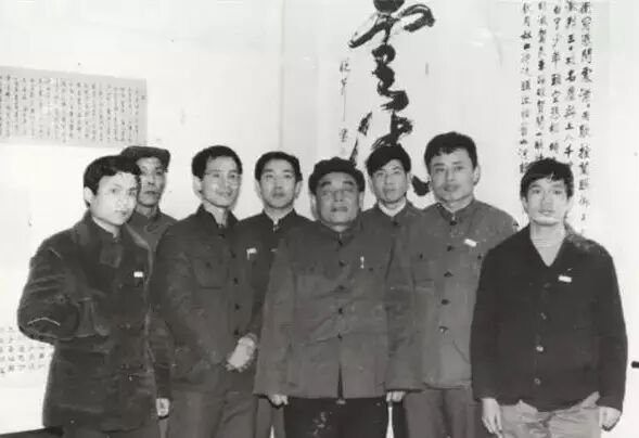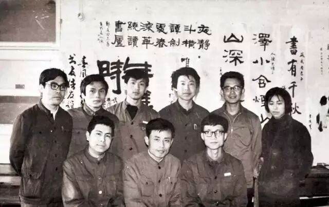 华人德毕业前夕,与北大书法社副社长、理事合影。前排右起:白谦慎、华人德、薛冲波(已故);后排右起:李建南、杨松、孔繁敏、孙□。