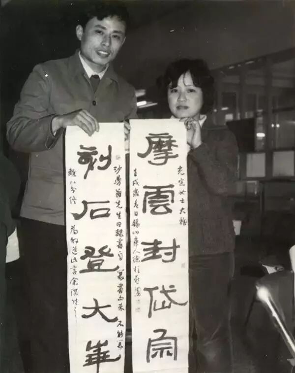 1981年春,华人德与白谦慎摄于北京友谊宾馆一美国专家公寓。白谦慎说:“华人德在北大读书时经常旷课。有一次,我去人德宿舍,他正在写毛笔字。我以为他那天没课,一聊才知道,他经常旷课,说《通史》大课老师讲的东西他都会。我当时对他的话将信将疑,但不久发现,他的桌子上经常放着《汉书》《魏书》,接触多了才知道,《通史》大课对他来说确实有些简单了。他经常翻的,还有许慎的《说文解字》、郑樵的《通志》,这两部书他在苏北插队时就读得很熟了。‘文革’时期,可看的书很少,手头有几本好书,就会一直翻,就像当年宝麟在安徽山区通读《辞源》一样,事实证明,几部好书读熟了,终生受益。”[白谦慎《华人德和民间社团及其他》]“华先生,您在北大读书时,真的经常旷课吗?”面对我的提问,他笑道:“白谦慎说的这件事儿,我忘掉了,但旷课肯定是有的。北大与清华不一样,环境很宽松,只要学业跟得上,你不去听课,也没人管你。有一年中秋节,同学们想去颐和园,正巧那天下午是《中国文化史》,我说这个老师讲得不好,就带着大家去颐和园了。老师反映到系里,系主任找我谈话,我就指出他讲课中的诸多错误,此事不了了之。《中国文化史》教学计划中,原本有传统书画的课程,后来,这位老师在课堂上对大家说,书画部分我就不讲了,你们班里有非常熟悉的同学,你们可以向他请教。还有一位老师,名气很大,上过央视。他讲到书法家李阳冰时,说有些老先生都读作李阳ning,他搞不明白是怎么回事。下课后我对他讲,《说文解字》中的‘冰’字,是‘凝结’的‘凝’字的篆书,所以人家念李阳ning是有依据的。这位老师对《说文解字》很熟悉,我这样讲,他一下就明白了。那几年,北大师资紧缺,古汉语课是王力先生的研究生给我们上的,他讲到《汉书》里的金日磾,是匈奴的王子。后来我对他讲,你念错了,是‘金midi’,‘日’字要念‘mi’。我看过《汉书》,它有反切注在上面。”曹宝麟来自安徽广德,是研究生招生制度恢复后北大中文系的首届硕士生。他第一次见人德的字,是在“燕园书画会”举办的展览上。曹宝麟说:“那天,我陪王力先生去看展览,了一师对人德的作品赞不绝口,当别人说这是学生的作品时,先生不信,说学生的字哪能这般老到。王先生的夸奖,让人德在北大出了名。为马寅初老校长百岁贺寿时,组织者特意邀请人德为马老书写了寿联。”