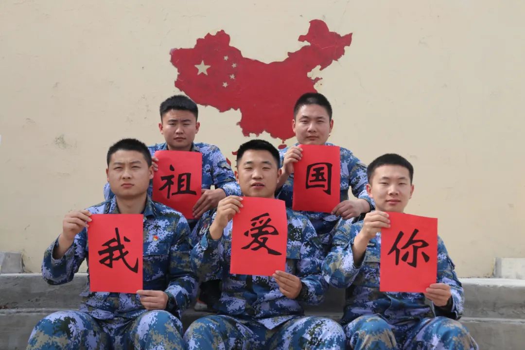 我在前方捍卫祖国,你在后方默默奉献。我们分担寒潮、风雷、霹雳;我们共享荣誉、流岚、虹霓。右手敬礼,左手牵你!不负祖国,不负于你!