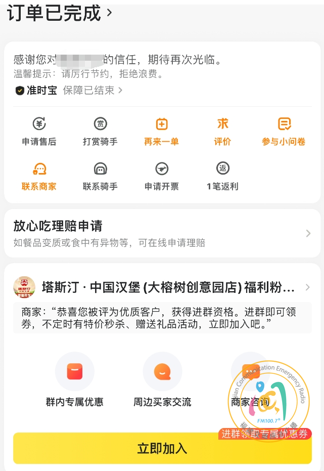 近日,福州陈女士向《维权007》投诉称,她于9月7日傍晚在一家外卖平台上一家名为塔斯汀中国汉堡大榕树创意园店的店铺,为孩子点了份餐,里面包含一个板烧凤梨中国汉堡,结果在孩子吃的过程中,她发现汉堡中间层的鸡肉全部烤焦了。后续她多次联系平台,但问题始终没得到解决。