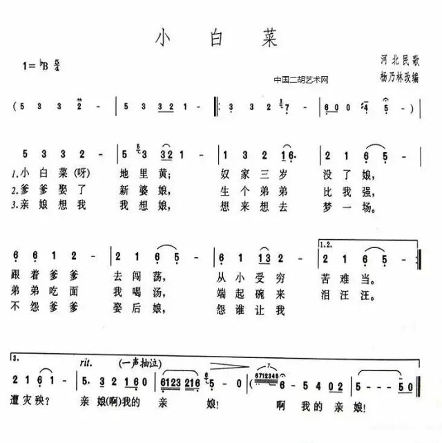 严洁敏老师用二胡演奏的这首民歌,二胡的悲凉更加体现了小白菜的凄苦的人生。