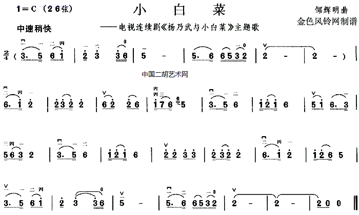 点击曲名即可欣赏音乐:二胡演奏-小白菜