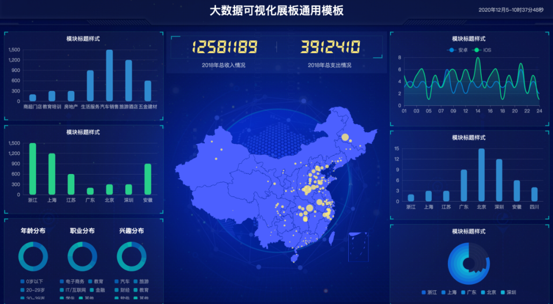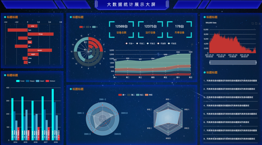 左下角的曲线面积图,科技感满满。