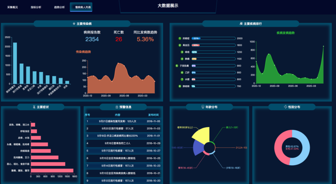 主要图表:折线面积图、地图等。