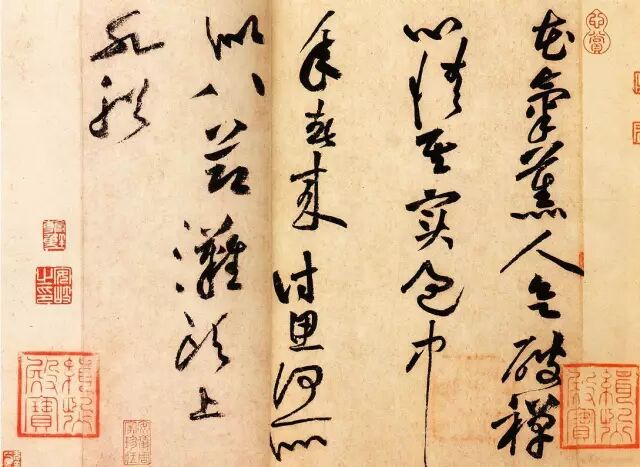 墨有死墨活墨之分,死墨原因有二:①宿墨所致。②只有笔墨功夫,而缺少书外功夫的灵气所出现的死板。反之有笔墨功夫与书外功夫相默契的书者,功夫越强则意境愈深,而宿墨亦会变成活墨,出现奇趣和神采。书法有二韵:一为墨润(韵),二为气韵。气韵贯通之字,而少墨润,犹如妙龄体巧姑娘,身材窈窕而皮肤粗糙损其色一样。 我们在一般吸水纸上临习用墨,可用任其调和,如写在宣纸上,则将墨汁2/3,水分1/3调匀即可,如果再能用墨多磨几下,写起字那墨之润感,就会如磨墨一样。 草书的笔划美在筋力为胜,从劲挺中呈现立体感,这种效果是提笔用锋得来的。何谓锋?即笔中透明的部分。笔分三分,锋笔头先分成两个等分,将下端一半再分成三部分,用底端为一分笔,2/3处为二分笔,再上为三分笔。一般用一分笔掺以二分笔为佳,最大量用到笔头的一半。 草书用锋要先裹后铺,提笔运行。这里要强调一下,提是经常的,顿时暂时的,且顿也是在提着的顿。提分为二:一曰实提,一曰意提。顿是意提中的顿。笔的运行中,要不时翻转笔面,节节换笔。因为笔分八面,会用可达四面,精到者可用八面。有人(庆福)看到我笔中少墨已不能进行时,我还能继续写下去,之后问我是什么原因,答曰:这是尚会用笔之故。我可以这样说,如果还有些特长的话,就是笔中之墨与别人相等,我能多写几个字而已。 草书笔划,点线连绵,长短殊异,形体大小亦悬殊较大。且字有字态,行有行势,欹侧倾斜,变化万千。学书布局,甚感茫然。此时应该抓住主要矛盾,任你千变万化,我力求重心稳当。以楷书的原理,使“一点成一字之规,一字乃终篇之准”的要求,挥运在你假想的轴线之上。注意有五:①要注意主笔划、主字的运用,如“知、去”。②要注意欹侧相柱,险绝救应的去掌握重心的措施,即一字有一字的重心,一行有一行的重心,一章有一章的重心。③要一气呵成,气韵贯通。④要点划互盼,字字牵情,相揖相让,行间呼应。⑤落款的字与正文的字相一致,正文紧密则款字紧密,正文疏朗,则款字随之。依据内容该穷款则穷款,该富款则富款。视其正文而定之。用印甚有讲究,地点、大小都受内容和款字的约束力。 草书最能抒发书者的性情和个性,由于感情作用于笔端,挥运起来,往往超越界定之外。这种率意天成的章法,神采盎然,看似无法而法在其中。这种成功的章法来源于两个前提:①学习传统,出入碑帖,融会贯通,胸中储有呼之来挥之去的万千形象。②娴熟的笔墨技巧,对诗文的真正理解,感情的激发,并作用于书法作品之中。 初学应以孙过庭《书谱》为宜。《书谱》有四个主要特点:①以楷则为其法度。②以笔送到为准则。③笔划简练,结体准确,自身规律体现完整,且形体刚健而又婀娜,险绝救应,通篇一体。④墨迹清晰。其次可根据你的爱好,进行选择。 欲求圆活劲健,法度谨严的还有怀素草书《千字文》、《智永真草千字文》等。 欲求奔放开阔,刚柔相济,跌宕变化,法外有法的张旭《古诗四帖》、怀素《自叙帖》、黄山谷《诸上座》等。 欲求行距宽舒、闲静、清雅的有董其昌、张瑞图、鲜于枢、赵孟頫的草书。 欲求点划劲挺,劲挺俊美的有祝枝山、文徵明,黄道周、倪元璐的草书等等。