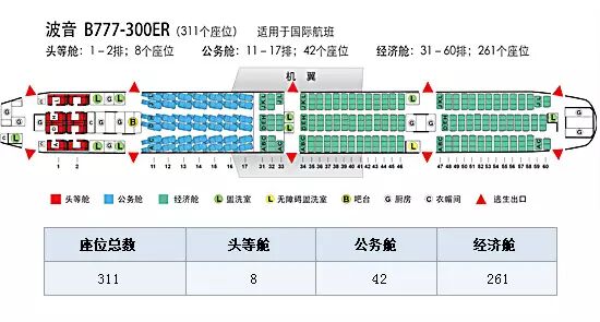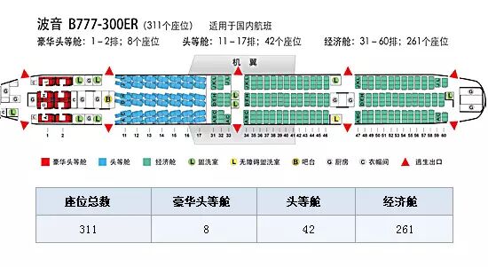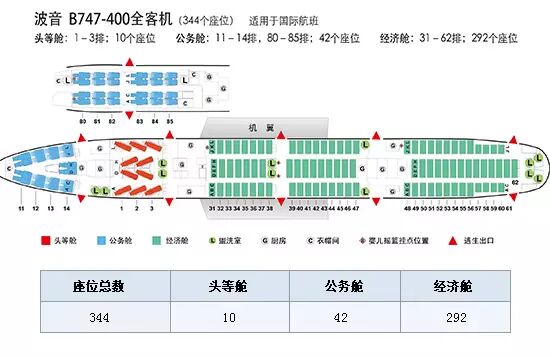 不同的机型机舱座位分布也有很大差异