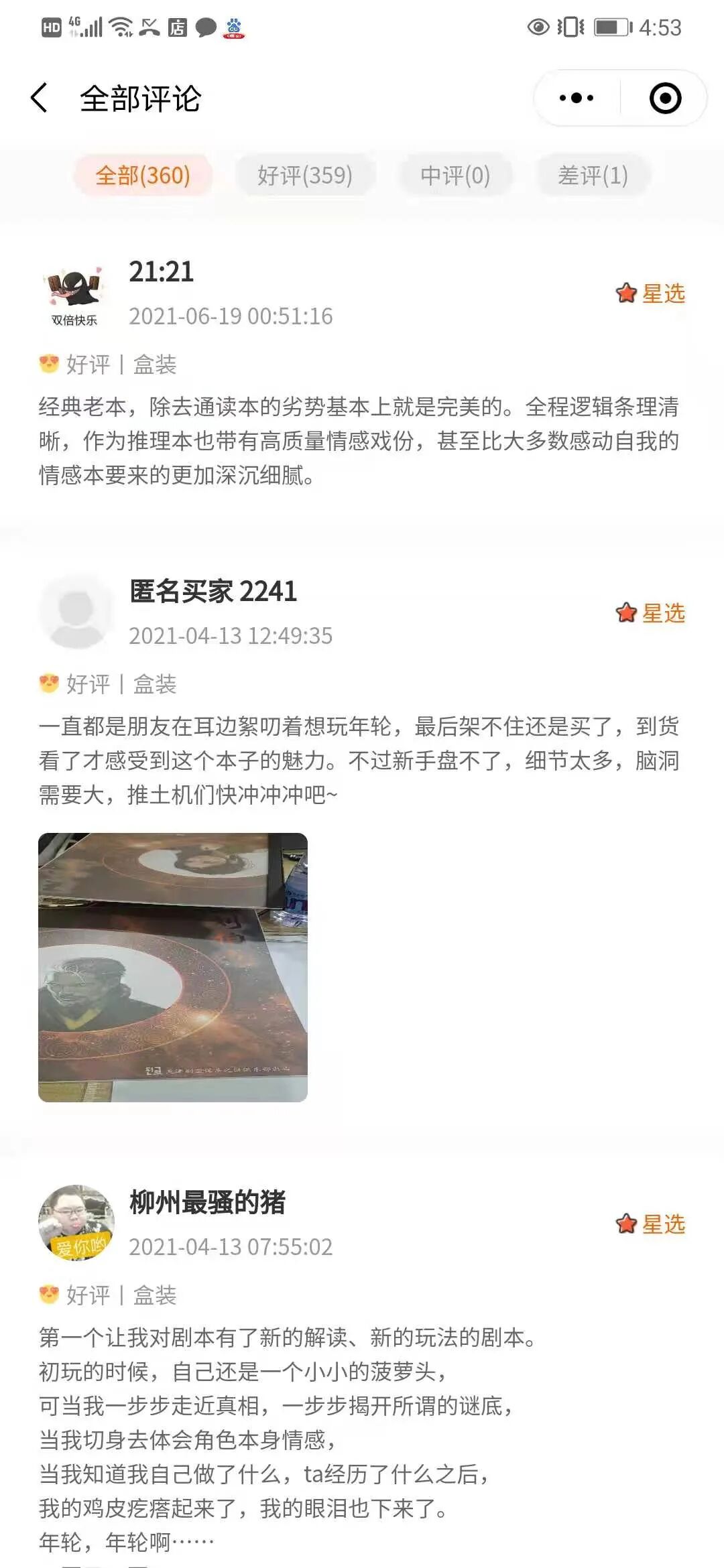 玩剧本杀时间越久你越会发觉:热度高的剧本,不一定都是烧脑推理剧本,往往更多是那种会讲故事的剧本。《年轮》能火起来,我个人感觉,是因为它有一个好的故事做支撑,也正是它引人入胜的故事,让我们这车人有了盘它的动力。《年轮》这个剧本的描述方式,是采用小说的形式,因此玩家阅读起来会比较轻松。作者并没有把文字搞得晦涩难懂,基本上从头到尾读下来,是比较顺的(当然这是一个通读剧本,读下来还是会花些时间的),像是在看一篇短篇小说。但是我要提示大家的是,《年轮》是一个非常吃细节的本,后续推理所需的很多关键信息,都藏在每个人的剧本故事中。所以在玩的时候,一定要吃透剧本内容,充分理解自己的故事,如果能动笔记一记关键点,一定不要怕麻烦!《年轮》的推理还原难度相对较高,而推凶这方面,我只能说简直简单的不能再简单了。至于推不推荐新手去玩,我的意见是不推荐整车新手。但如果对自己推理能力相当自信的人,也大可去试一试,毕竟这个本在推理层面上是没有bug漏洞的,应该说是很完整,很紧凑,几近完美。另外就要讲讲这个本的恐怖之处。我们在开《年轮》这车的时候,是拜车队内有理科大神带队,才顺利的用4个多小时推完了整个故事。对,这也是我要说的,《年轮》这个本对于文科生来说,真的有些不友好,绝对是要逼死我们的节奏。(应该说文科生就跟剧本里的凶手一样,太难了…)剧本内含有大量的计算,没有较强的逻辑推理和计算能力,想玩明白有点困难,我是真的全程给大家捋逻辑,但计算嘛,当然就交给我们的理科“爸爸”了。我是年轮入坑,至今还可以对故事内容和情节烂熟于心,是那种一旦盘出来就很难忘记的世界观与故事架构的类型。年轮的核诡放到今天看,不算新鲜了,但是作为萌新入手,完全可以感受到被深深的旋涡吸进去的那种,玩过几天之后还不能自拔。不过,如其他人所说,不适合全车萌新,需要有人可以开世界观,世界观开出来故事还原就如丝顺滑了。很多人说最后是数学题,嗯,是的,对数理逻辑能力强的人难度其实不大,也就是加减乘除而已。总体来讲,年轮属于硬核玩家必玩本,难度在于1、萌新开世界观,2、最后那道数学题,全程无坑,体验极好。再说《蛊魂铃1/2/3》,作者保持每年一本的追番节奏,说明市场反馈是很好的,玩家评价不错。相比年轮,《蛊1》更适合新手入坑,从顺序上要先玩,不然玩过年轮再回刷,就会觉得没有那么爽了。反倒是按顺序把《蛊1/2/3》刷完,刷到3的时候,你会有明显的追番亲切感,这种在三场剧本杀中延续世界观的感觉有点小爽。不过说回来,时间不多为了感受追番的乐趣就没必要了,经典本太多不要浪费时间。总体来讲,蛊1属于口碑经典本,不难,适合入坑,全车萌新可上。比蛊2/3好得多,如果已经是追求体验的高玩老司机不玩也罢。以上感悟为转载,如有侵权请发邮件至:tydcb@126.com,立即删除处理。