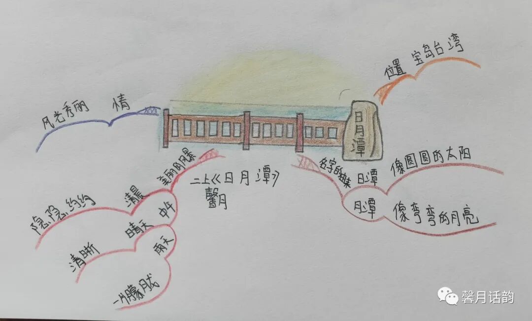引导学生借助每个自然段的关键词背诵积累。如第2自然段“日潭、月潭”;第3~4自然段“清晨、中午、下雨”等。还可以师生合作填空、小导游角色扮演讲解等方法来背诵。