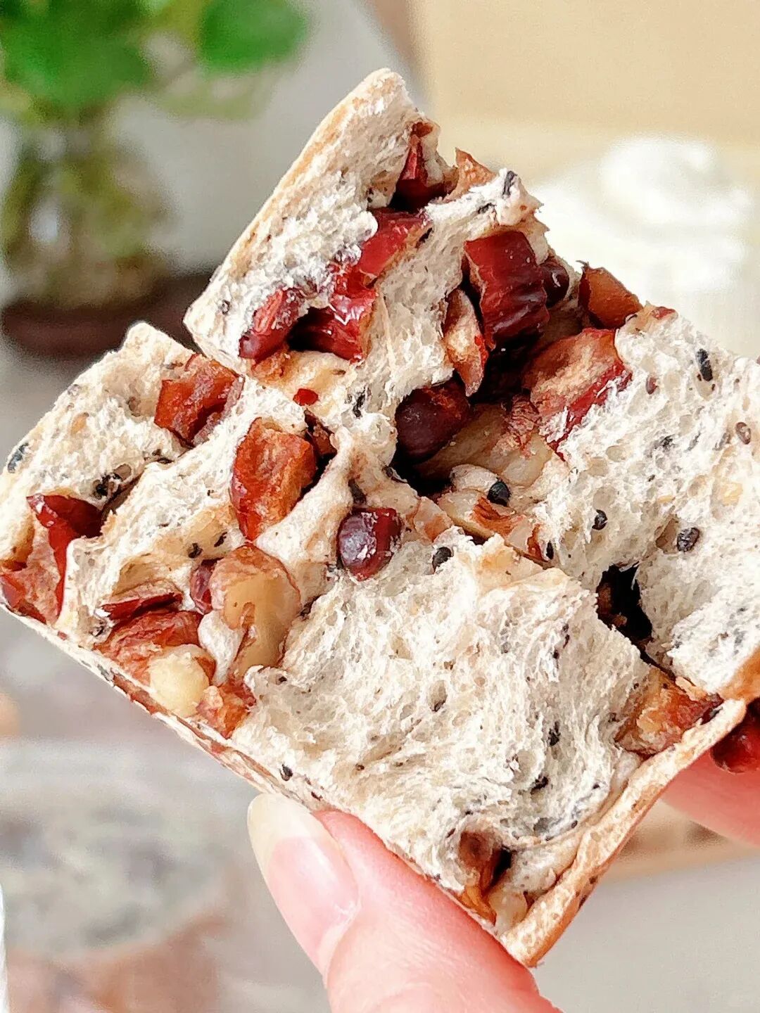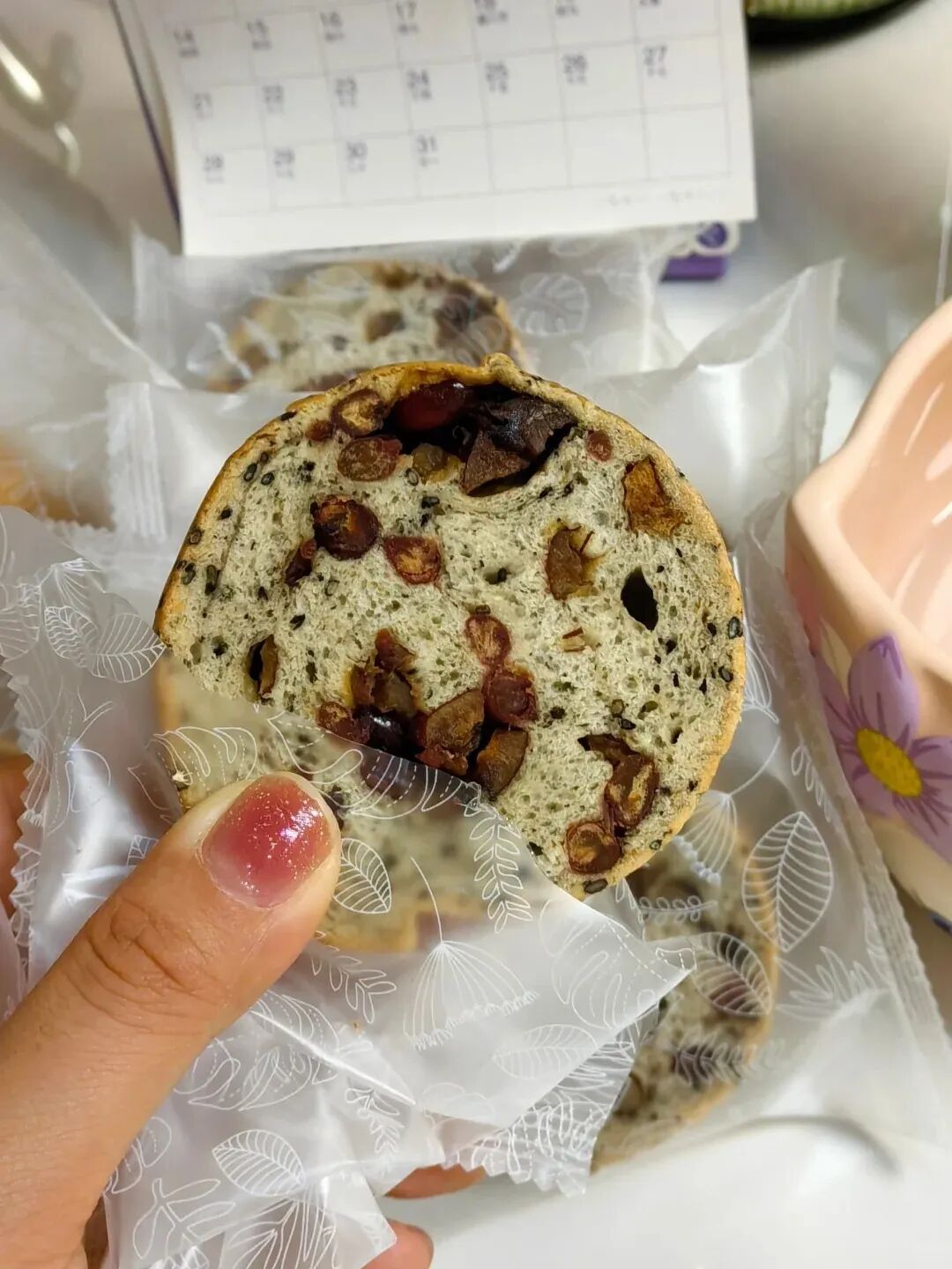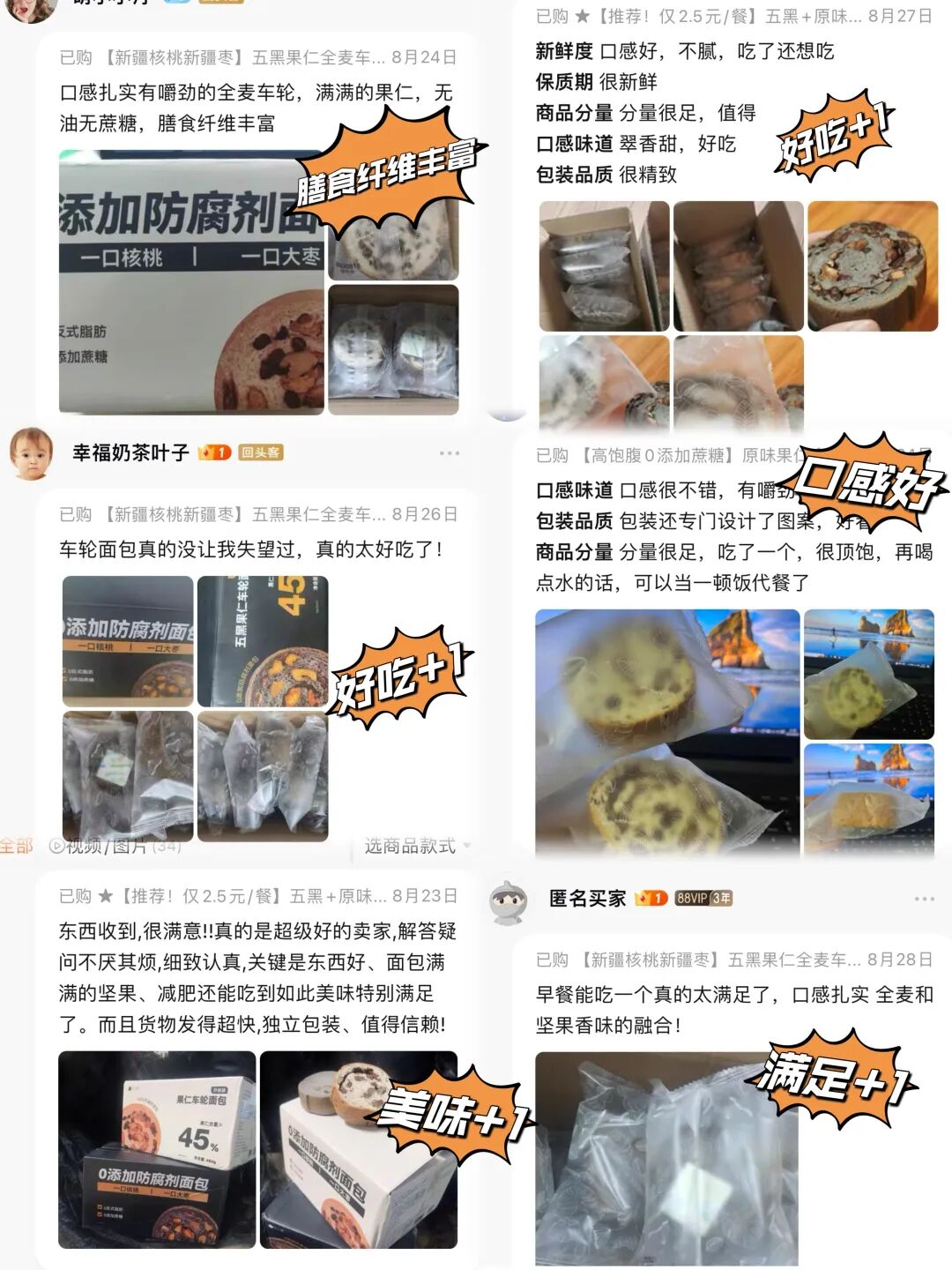 每一种口味都好吃 ??低糖 低脂肪 高膳食纤维 满满的坚果果仁 健康好吃有营养 早餐来一片 搭配牛奶??咖啡真的是完美组合 里面包满了核桃,红豆,红枣三种果仁 都是小朋友老人家喜欢的口味 多囤几箱就对了,??害怕不够分!