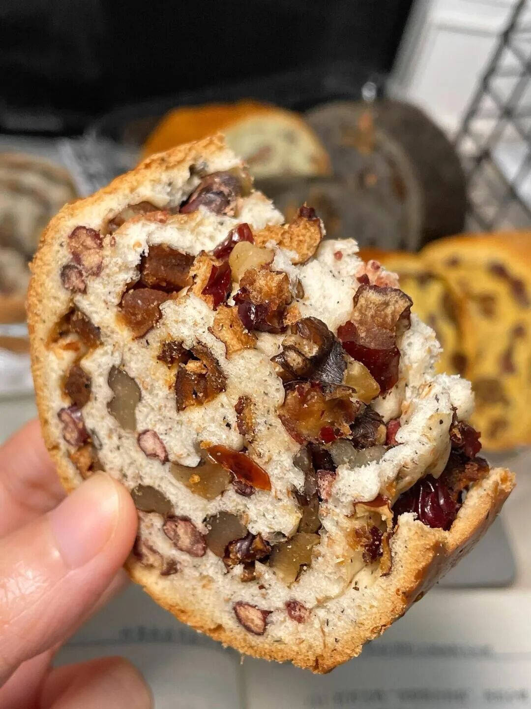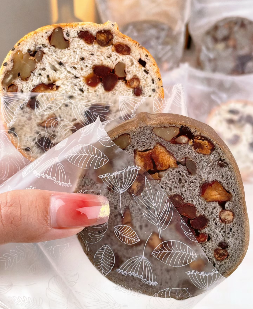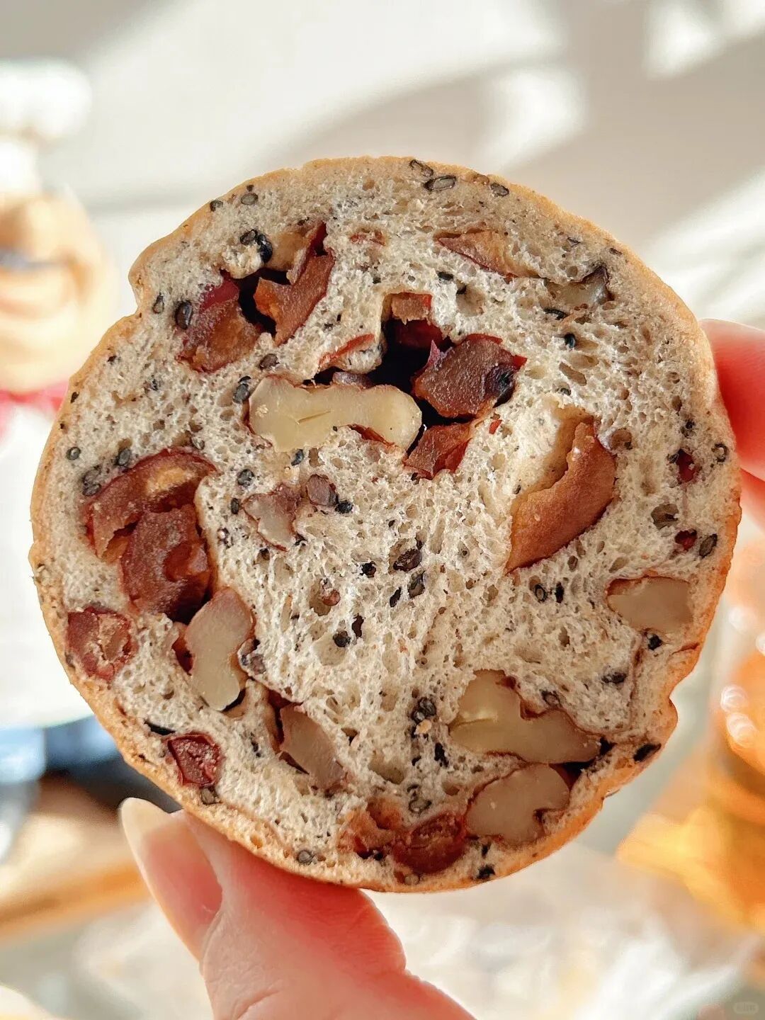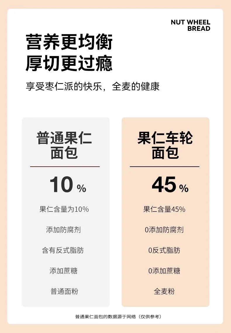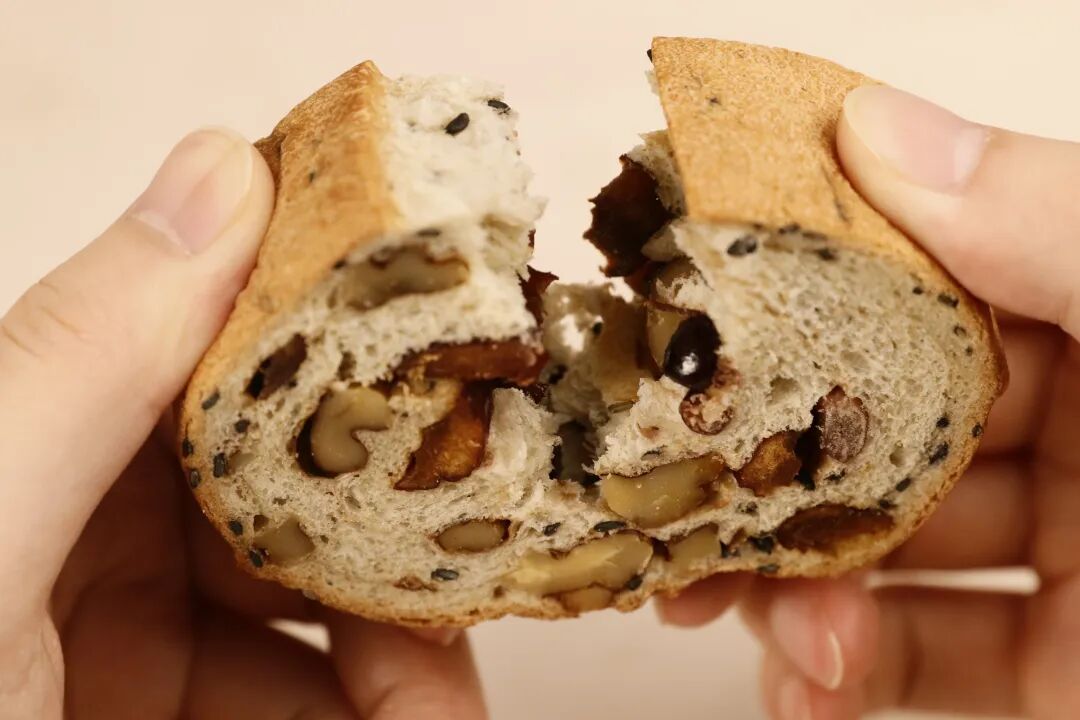 ?45%的坚果果仁含量 并且保留了果仁的颗粒感 口口能吃到料,酥脆美味?? ??看的到吃的到的才是真的好面包 这个车轮果仁面包 ??都是整颗的坚果果仁包进去的 没有像那些沙拉酱那样看不见的科技狠活